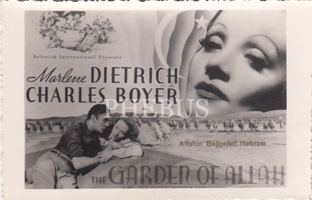 Allahın Bahçeleri Hatırası sinema kartpostalı, Marlene Dietrich, Charles Boyer, The Garden of Allah, 14x9 cm