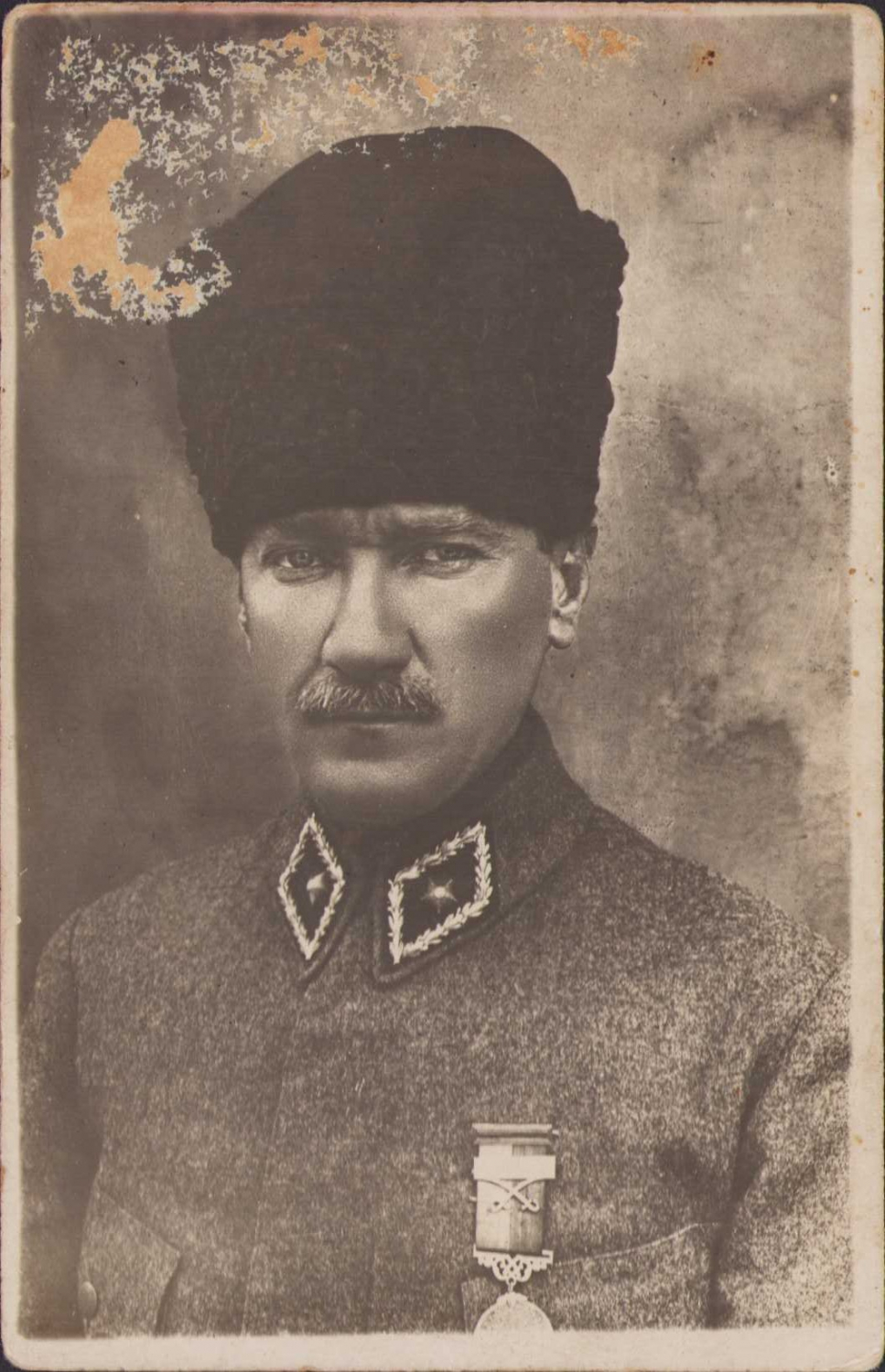 Atatürk portresi, büyük imtiyaz madalyası ve kalpak detaylı, haliyle