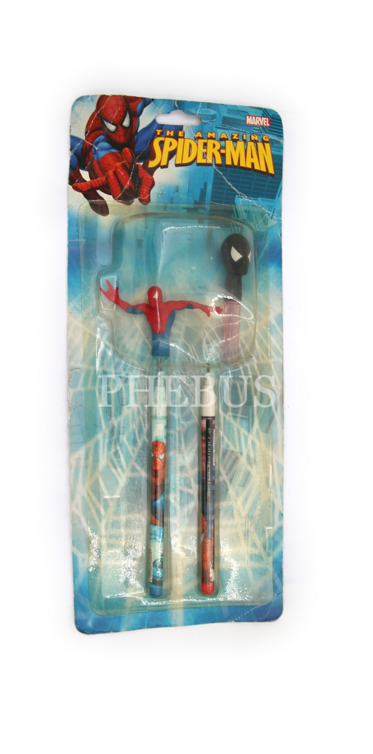 2008 Marvel lisanslı Spider-Man [Örümcek Adam] başlıklı kalem, orijinal paketinde iki adet, her biri 21x1 cm