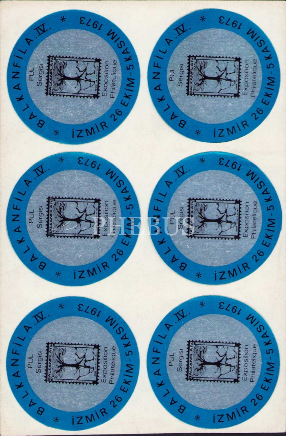 IV. Balkanfila İzmir 26 Ekim-5 Kasım 1973 Pul Sergisi çıkartması, 6 adet, her biri 5 cm