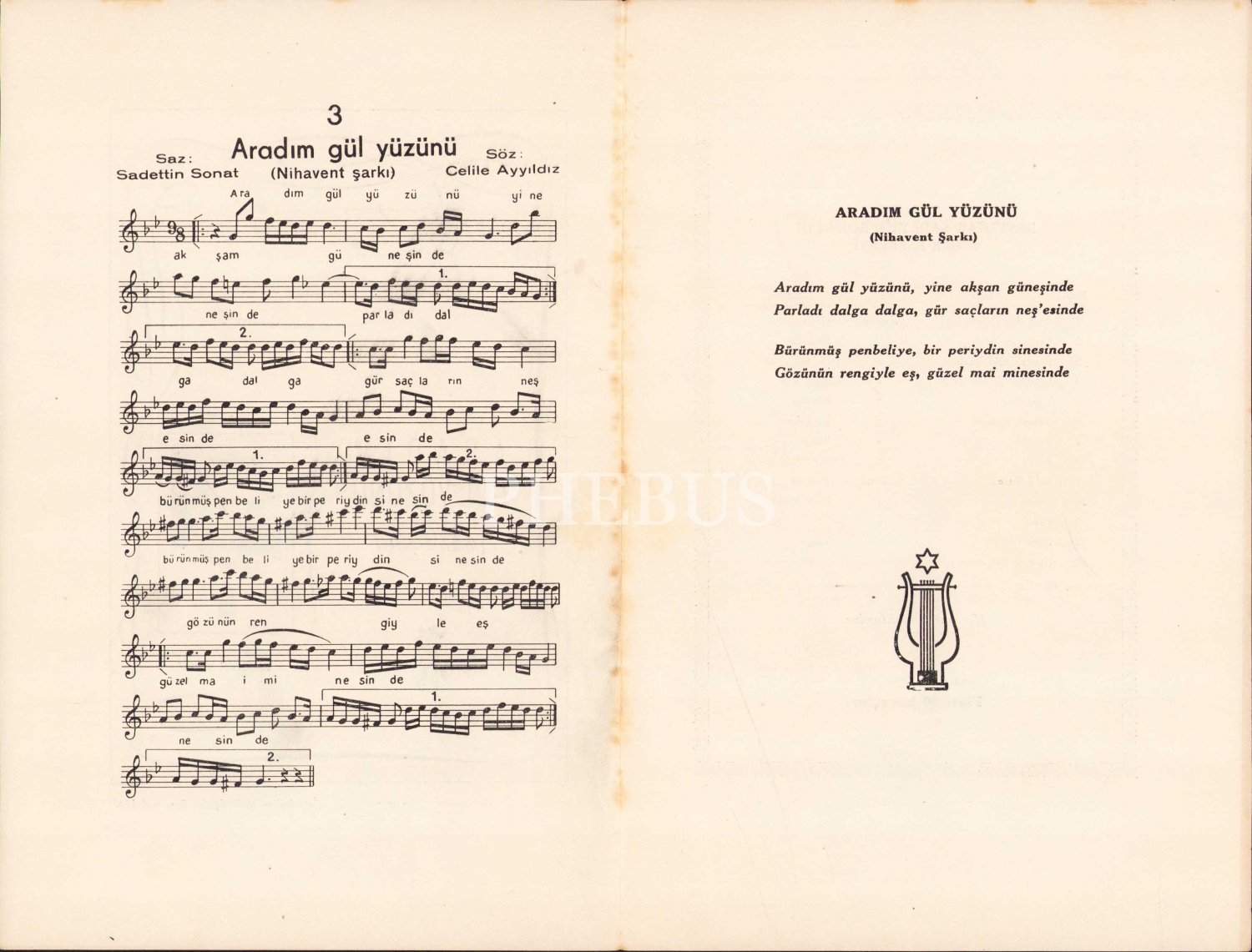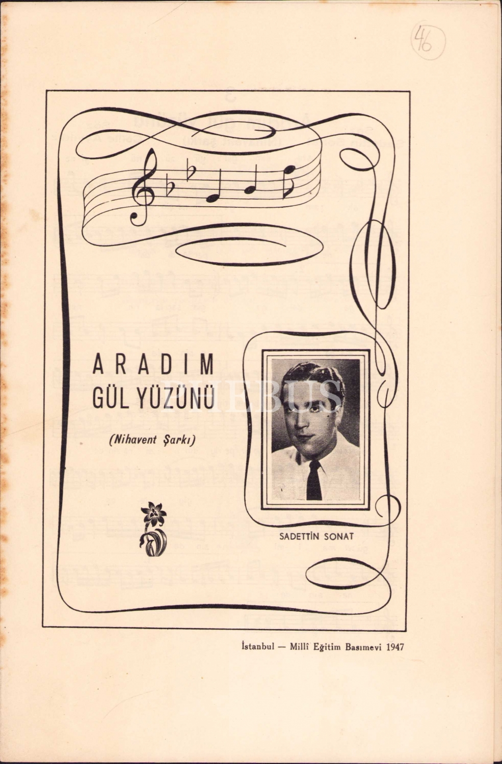 Matbu Nota, Aradım Gül Yüzünü, Nihavent Şarkı, Sadettin Sonat, İstanbul, Milli Eğitim Basımevi, 16x25 cm