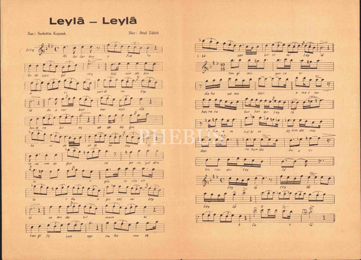 Matbu Nota, Leyla Leyla, Sadeddin Kaynak, İstanbul Numune Matbaası, 2 sayfa, 17x25 cm