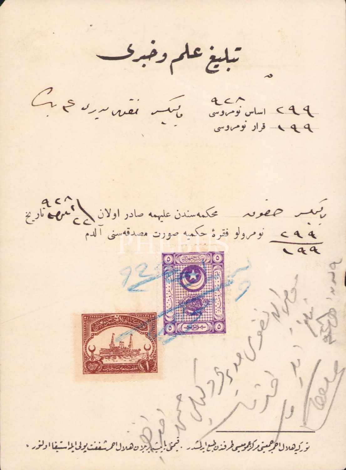 Osmanlıca Balıkesir Hukuk mahkemesi tebliğ belgesi, 1928 tarihli, 13x17 cm