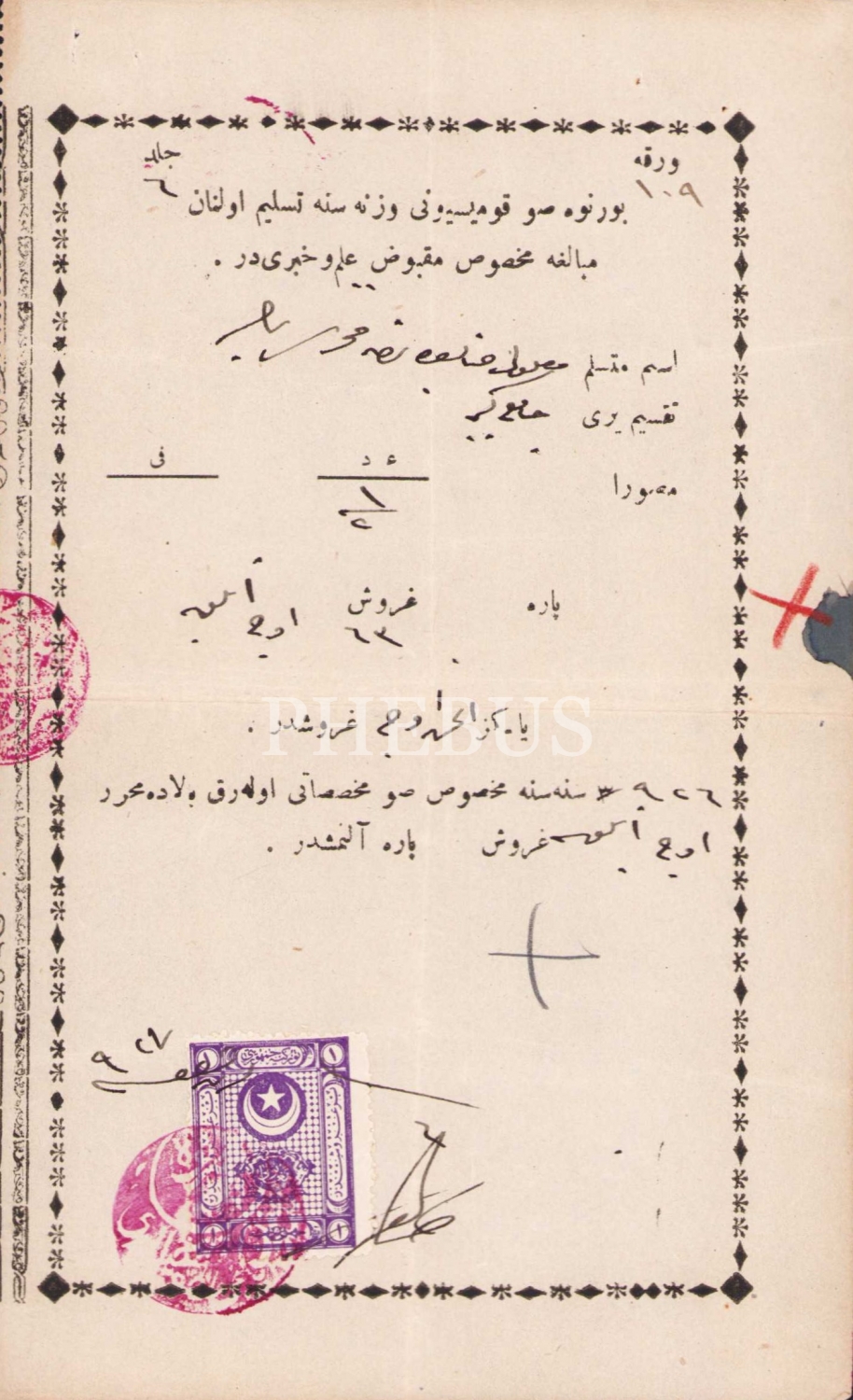Osmanlıca Bornova Su Komisyonu makbuz, 1927 tarihli, damgalı ve pullu, 12x20 cm