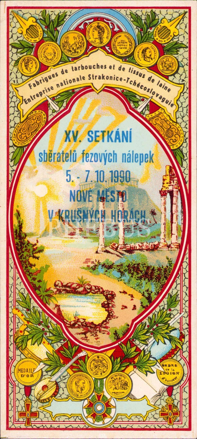 Osmanlı dönemi fes etiketi, 1990 tarihli sergi damgalı, 10x24 cm