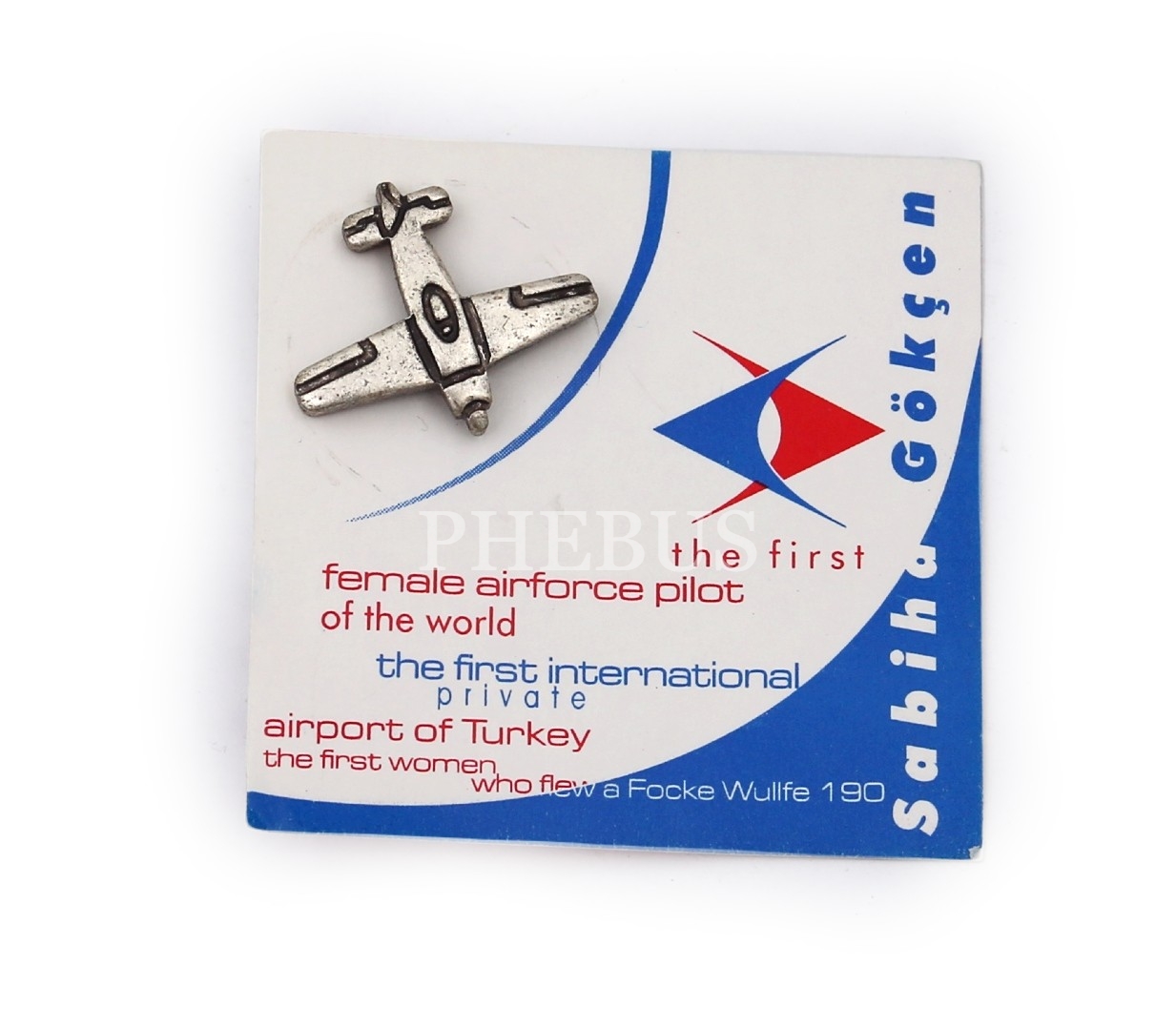 Sabiha Gökçen uçak şeklinde yaka rozeti, 2 cm