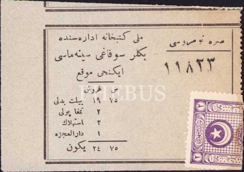 Osmanlıca Bekler Sokağı Sineması Bilet, İkinci Mevki, pullu, 9x6 cm