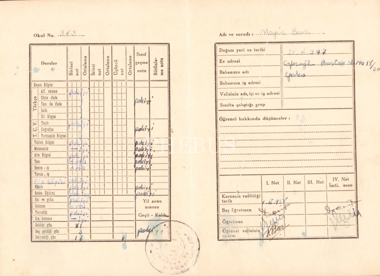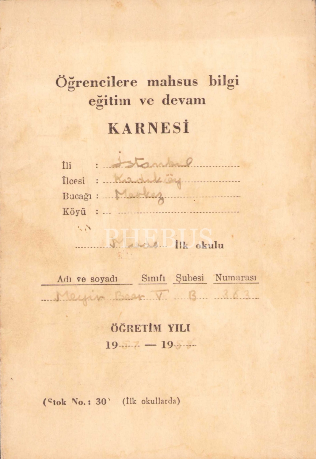 Kadıköy Moda İlkokulu karnesi, 1957-1958 tarihli, 12x18 cm