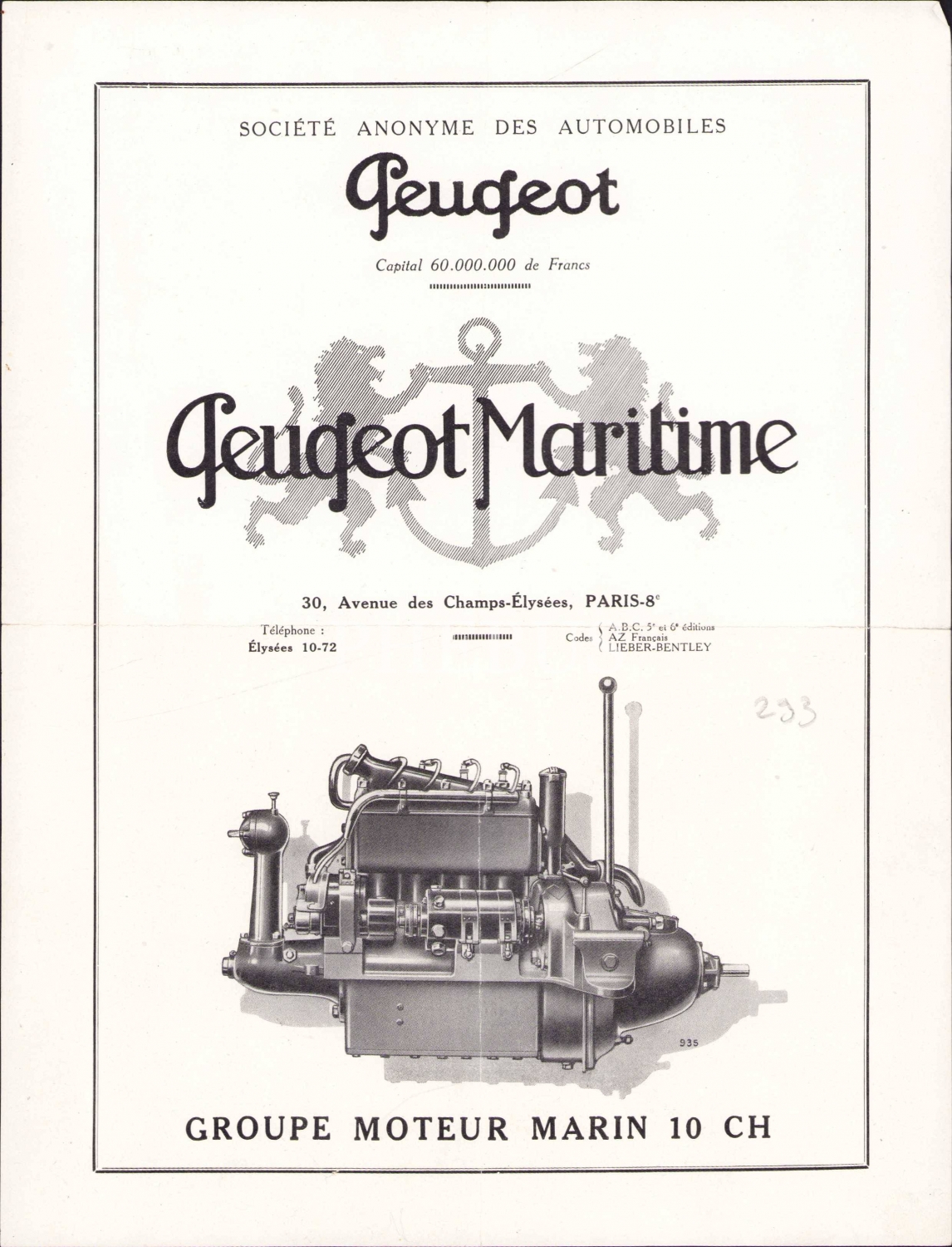 Peugeot deniz motorları reklam broşürü, 21x28 cm