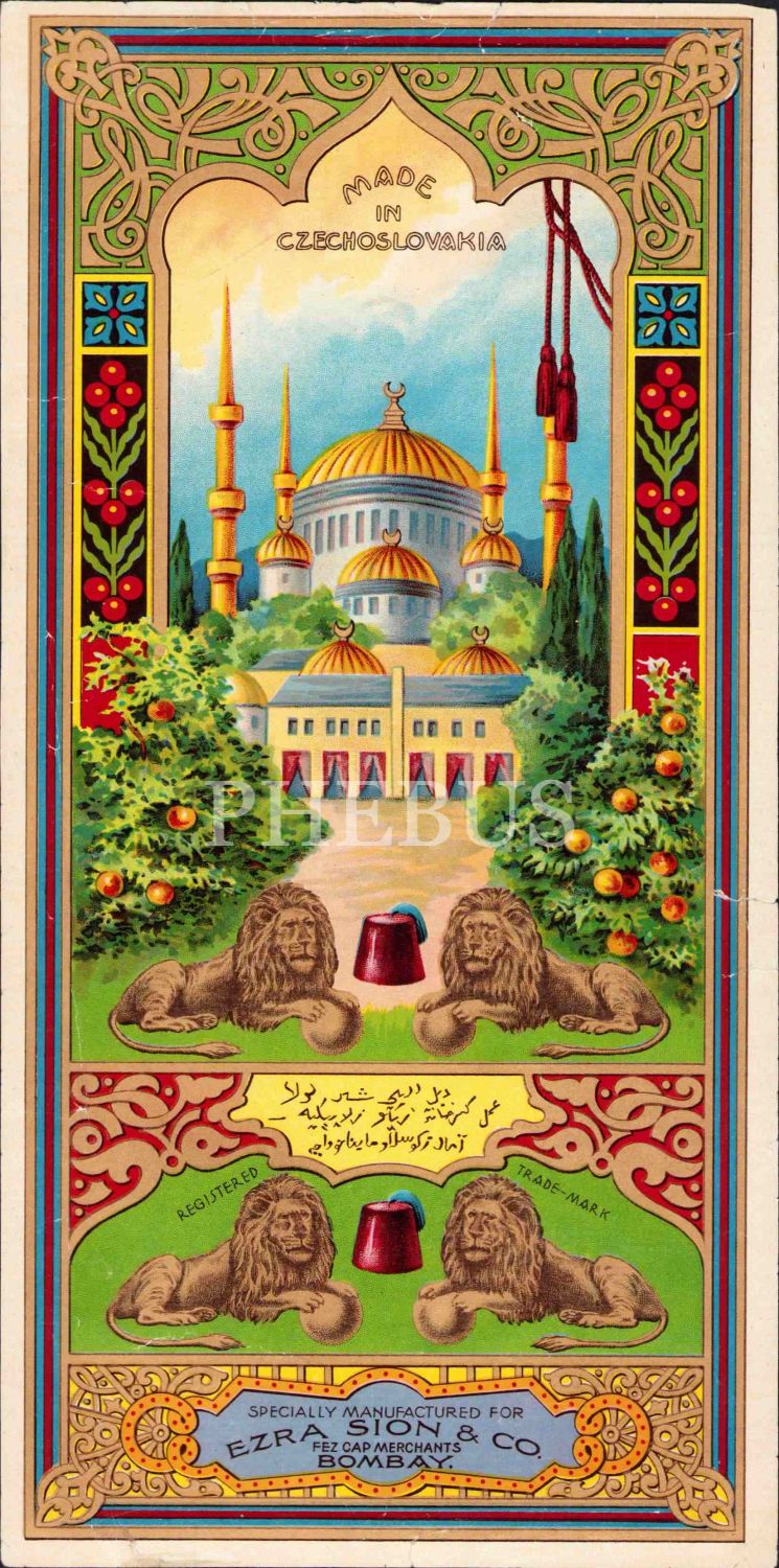 Osmanlı dönemi fes etiketi, Made in Czechoslavakia, 14x29 cm