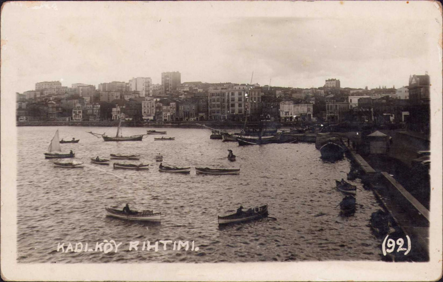 Kadıköy Rıhtımı genel görünüm, arka yüzü Rumca yazılı, 1935 tarihli