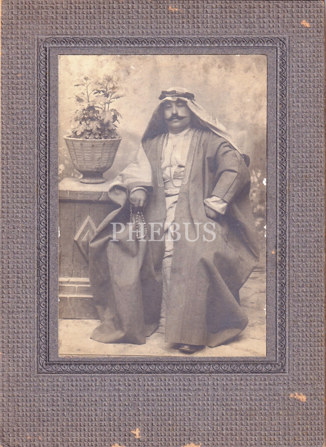 Osmanlı Dönemi Tespihli Arap Kıyafetli Tip Kabin Fotoğraf 14,5 x 20 Cm