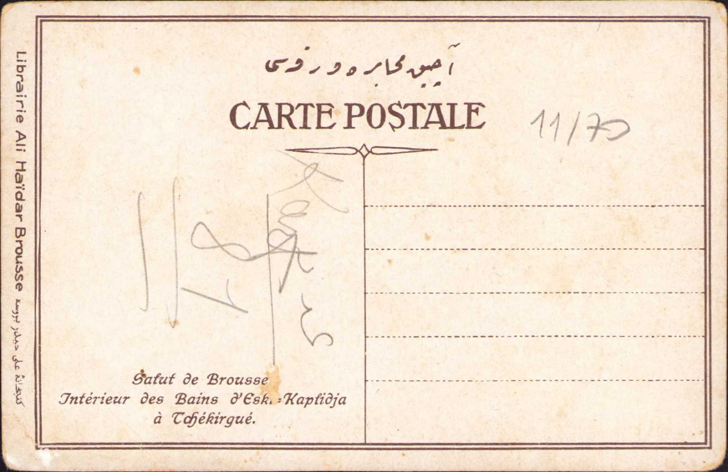 Bursa Eski Kaplıca, Kitaphane-i Ali Haydar baskısı, Bursa adresli, iki dilde
