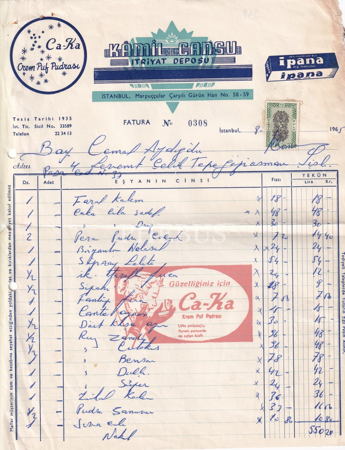 Krem Puf Pudrası Kamil Cansu Itriyat Ticarethanesi Faturası