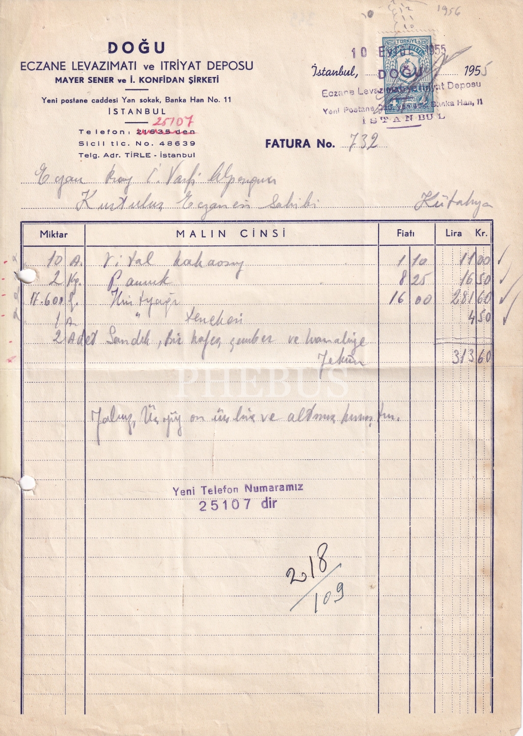 Doğu Itriyat Ticarethanesi Faturası
