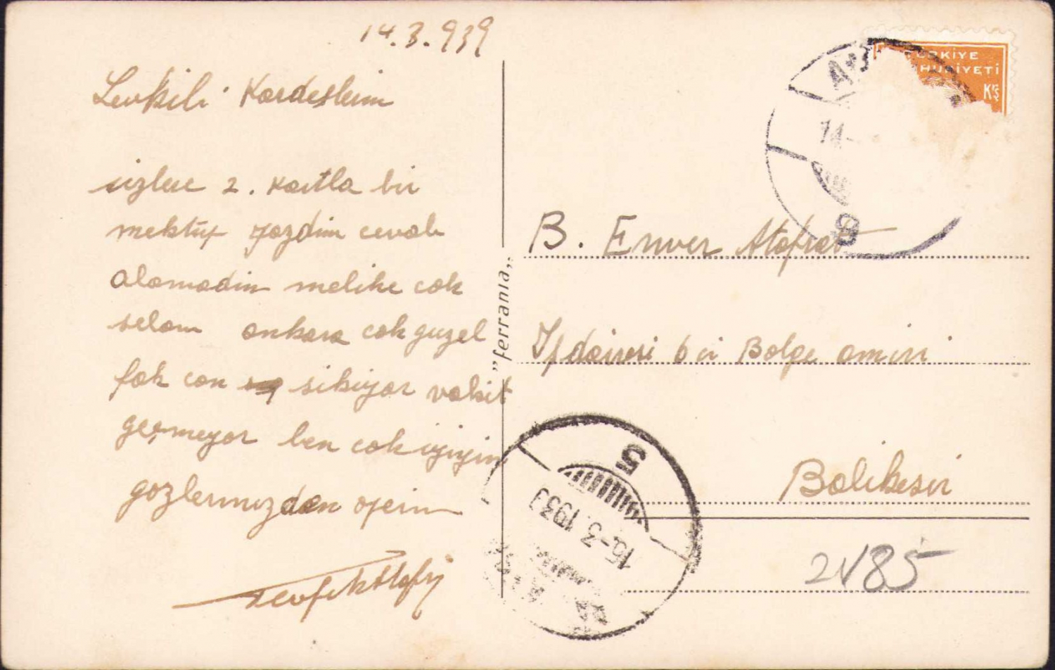 Ankara Yenişehir genel görünüm, 1939 tarihli, postadan geçmiş, arkası yazılı, Balıkesir'e gönderilmiş