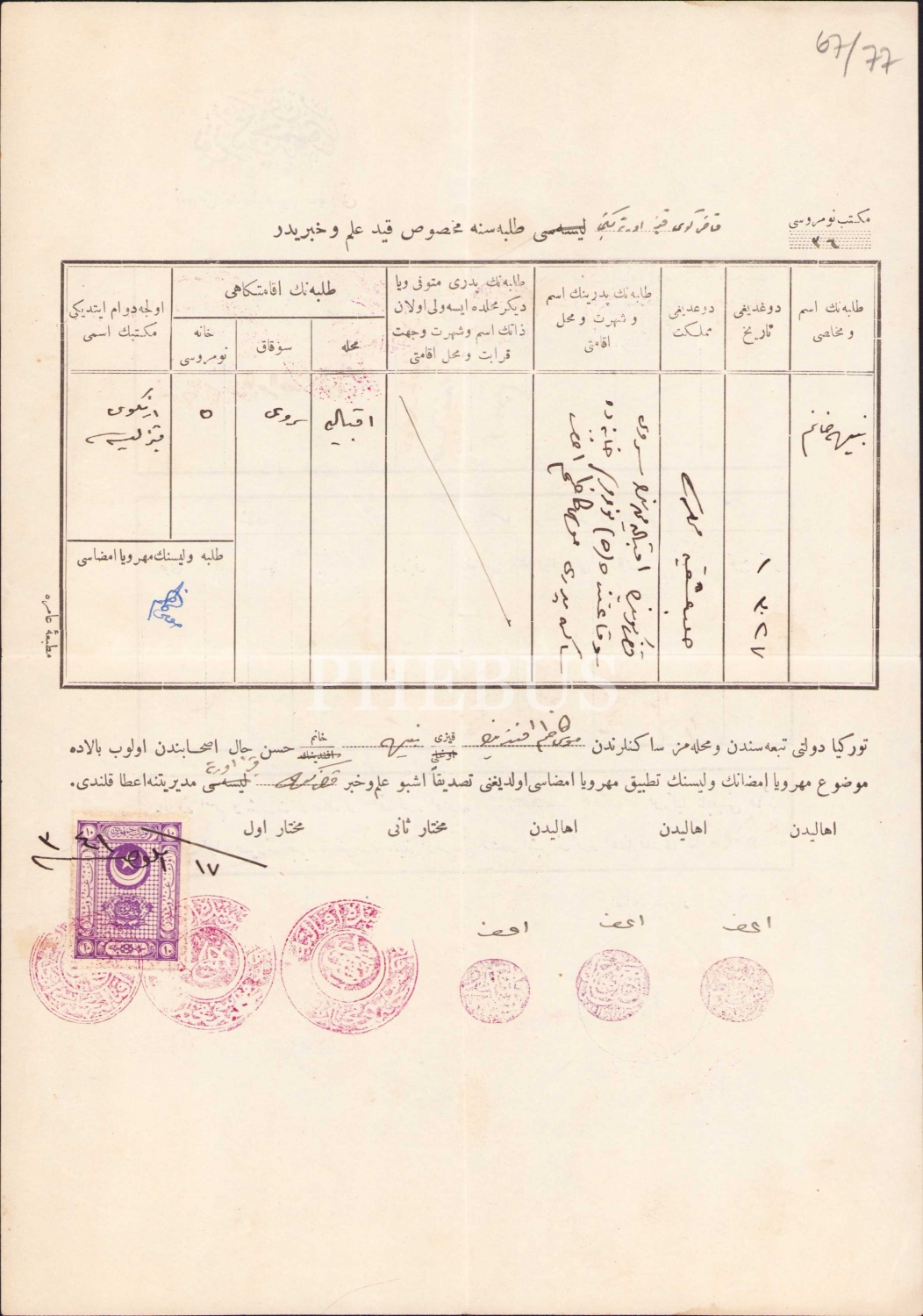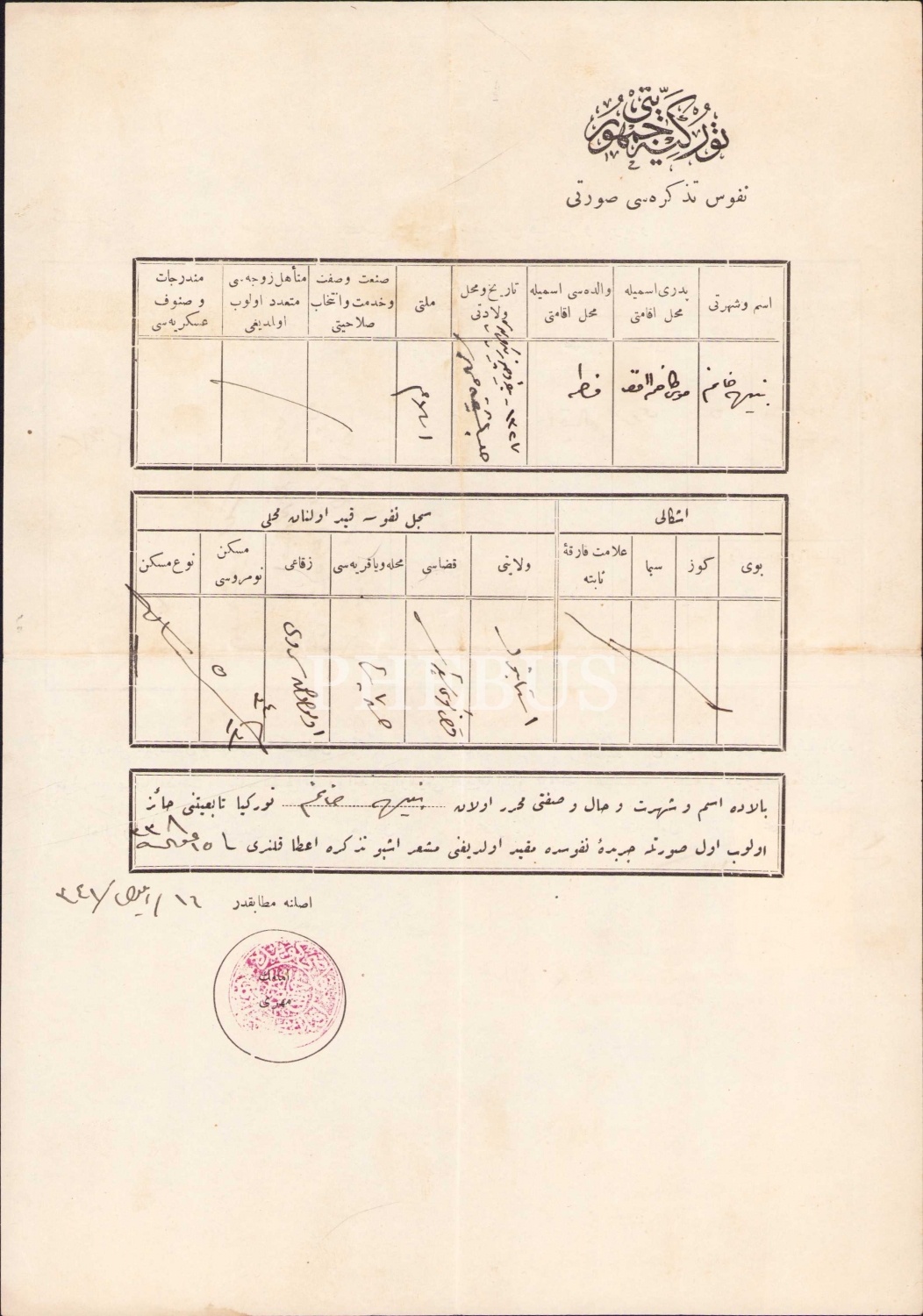 Osmanlıca Nüfus Tezkeresi sureti, 1341 tarihli, 20x28 cm
