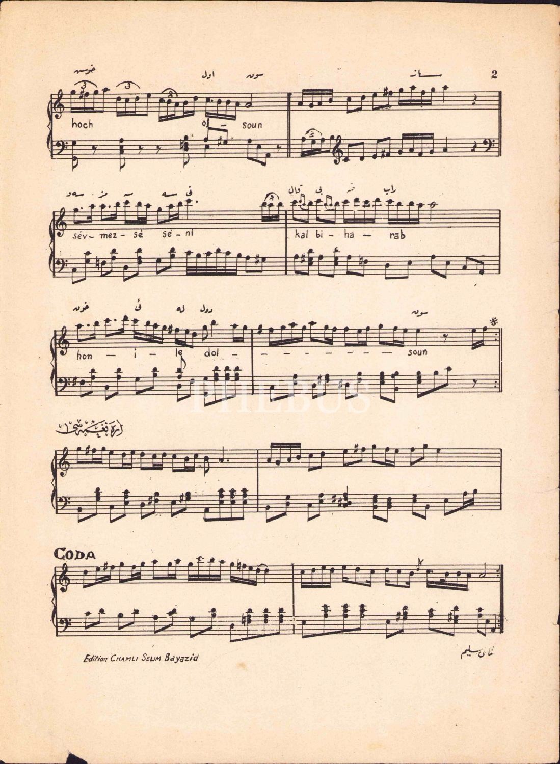 Matbu Nota, Zevkim Hevesim Hep Seninle Pür Elem Olsun, Bimen Şen, Şamlı Selim Yayınları, İstanbul baskı, 25x35 cm