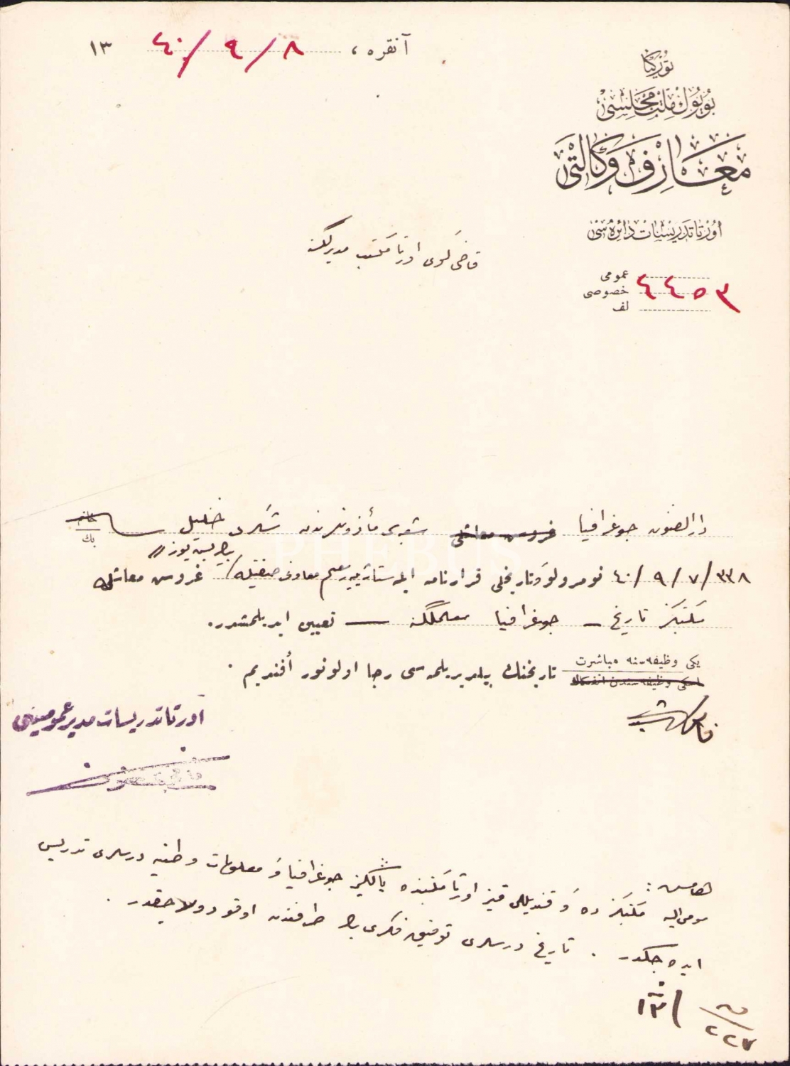 Maarif Vekaleti antetli Kadıköy Orta Mektebi Müdürlüğüne yazılmış Osmanlıca belge, 1340 tarihli, 14x20 cm