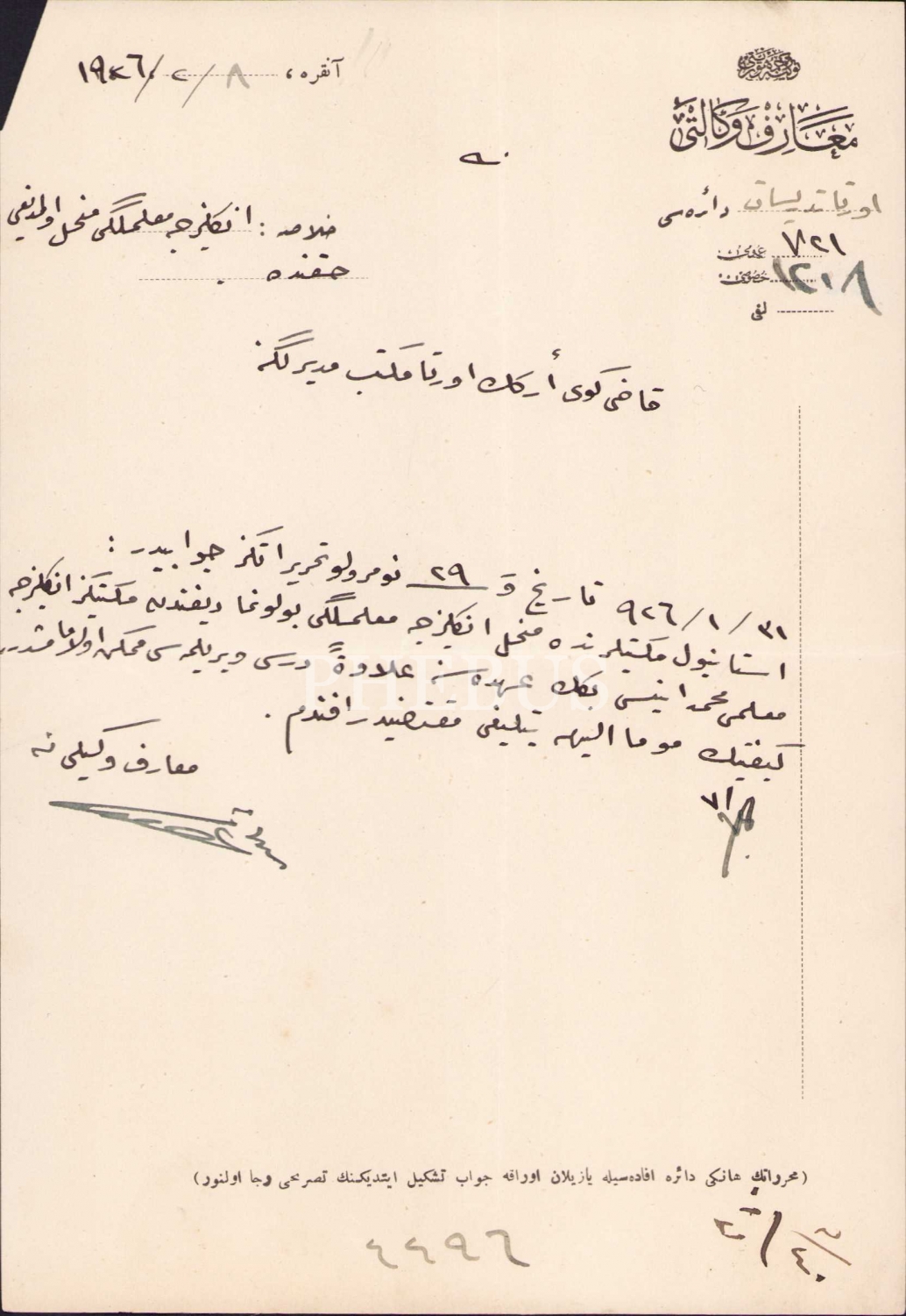 Kadıköy Erkek Orta Mektep Müdürlüğüne yazılmış Osmanlıca belge, 1926 tarihli, 14x21 cm