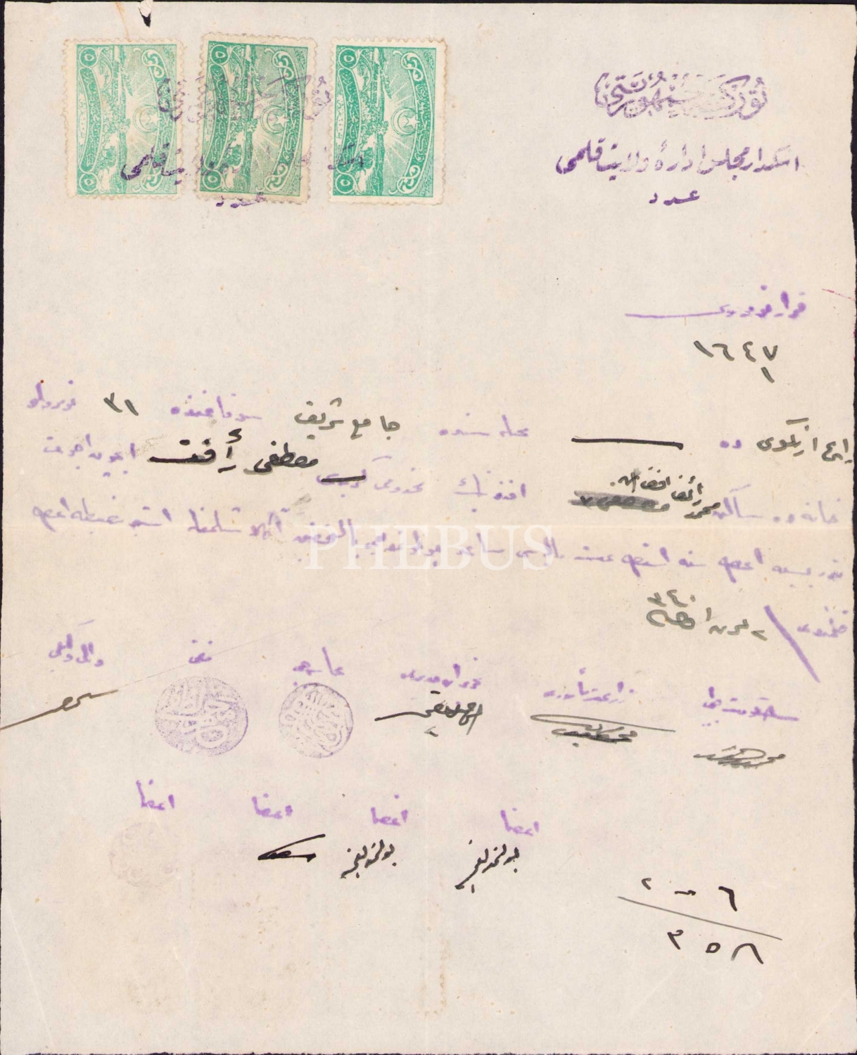 Osmanlıca Üsküdar Meclis-i İdare Vilayet Kalemi antetli İçerenköy'de oturan Mustafa Refet ile alakalı belge, 17x21 cm