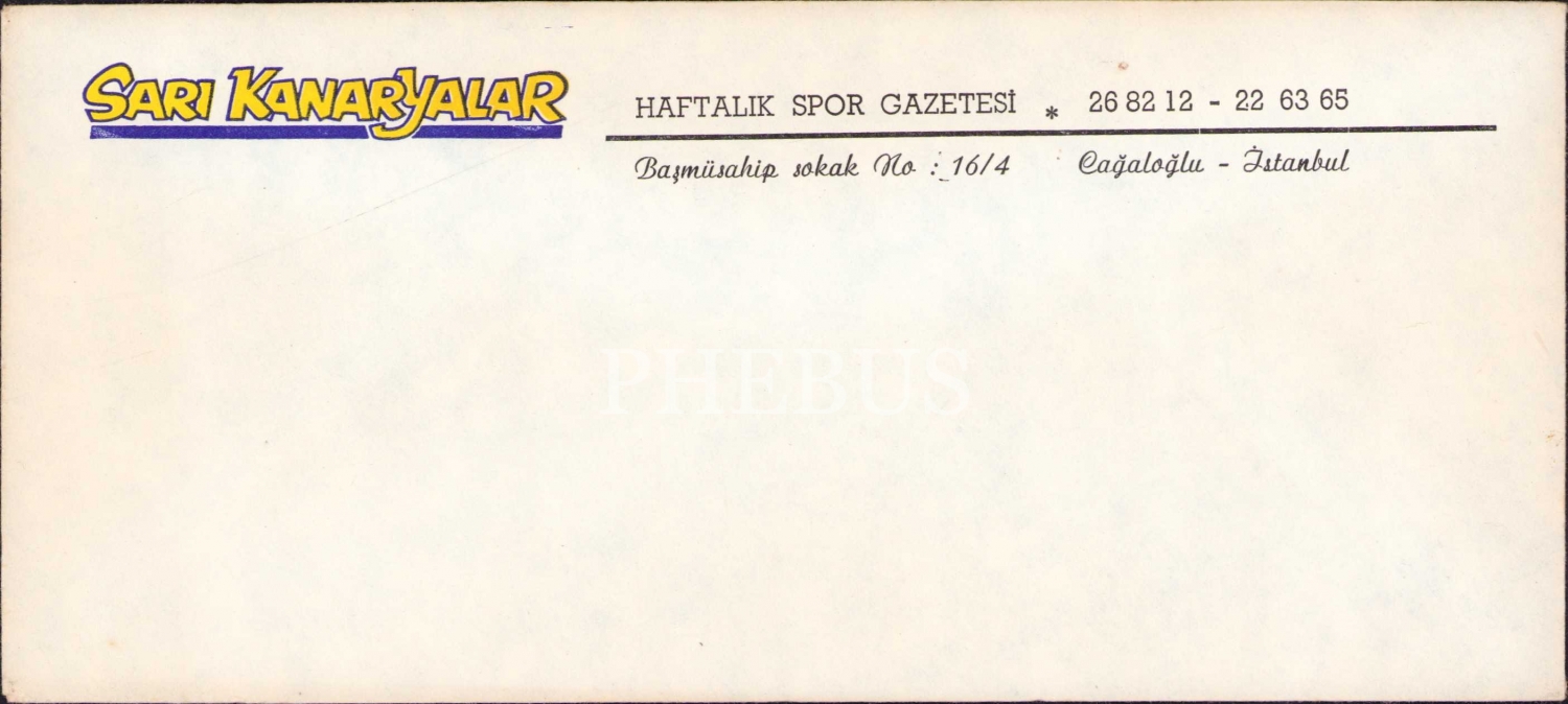 Sarı Kanaryalar Haftalık Spor Gazetesi antetli zarf, 24x10,5 cm