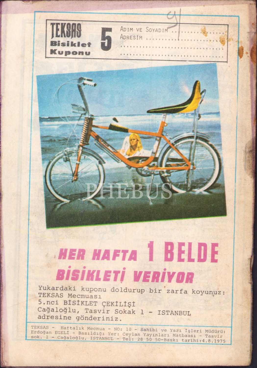 Teksas - haftalık mecmua, No. 10, Samim Utku kapak, Ceylan Yayınları Matbaası, İstanbul, 1975, 28 sayfa, 13x19 cm