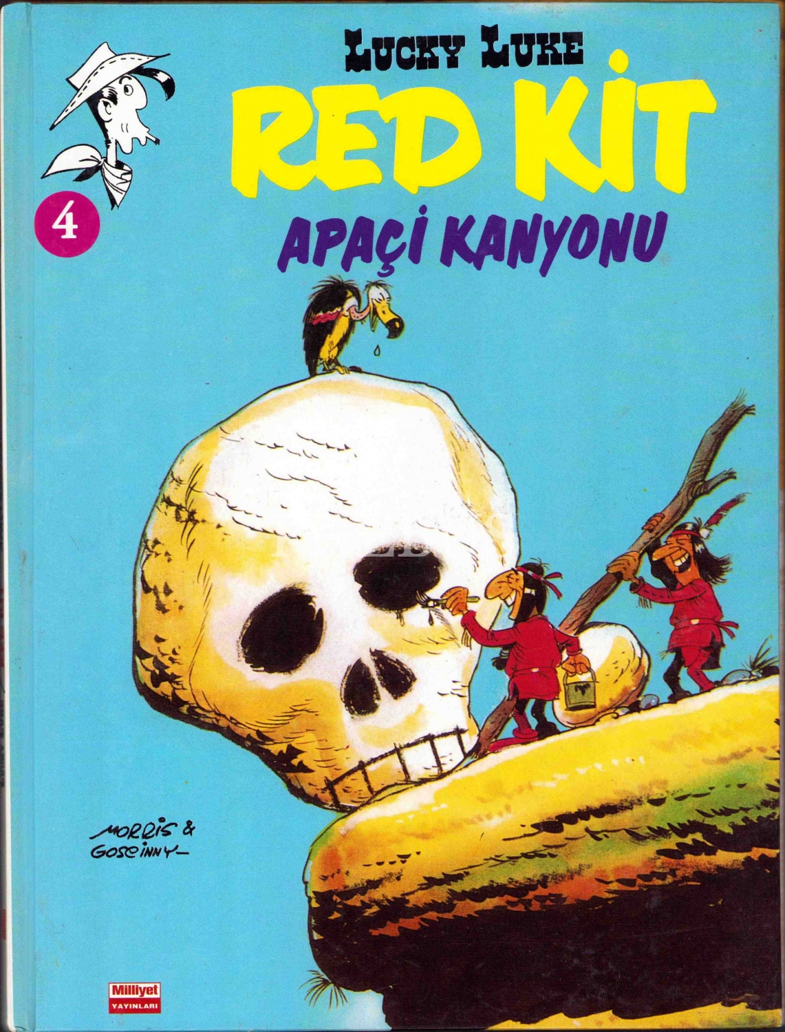 Red Kit - Apaçi Kanyonu, No. 4, Lucky Luke, İlk baskı, çev. Eray Canberk, çizim: Morris & Goscinny, Milliyet Yayınları, 1996, 47 sayfa, 22x28 cm
