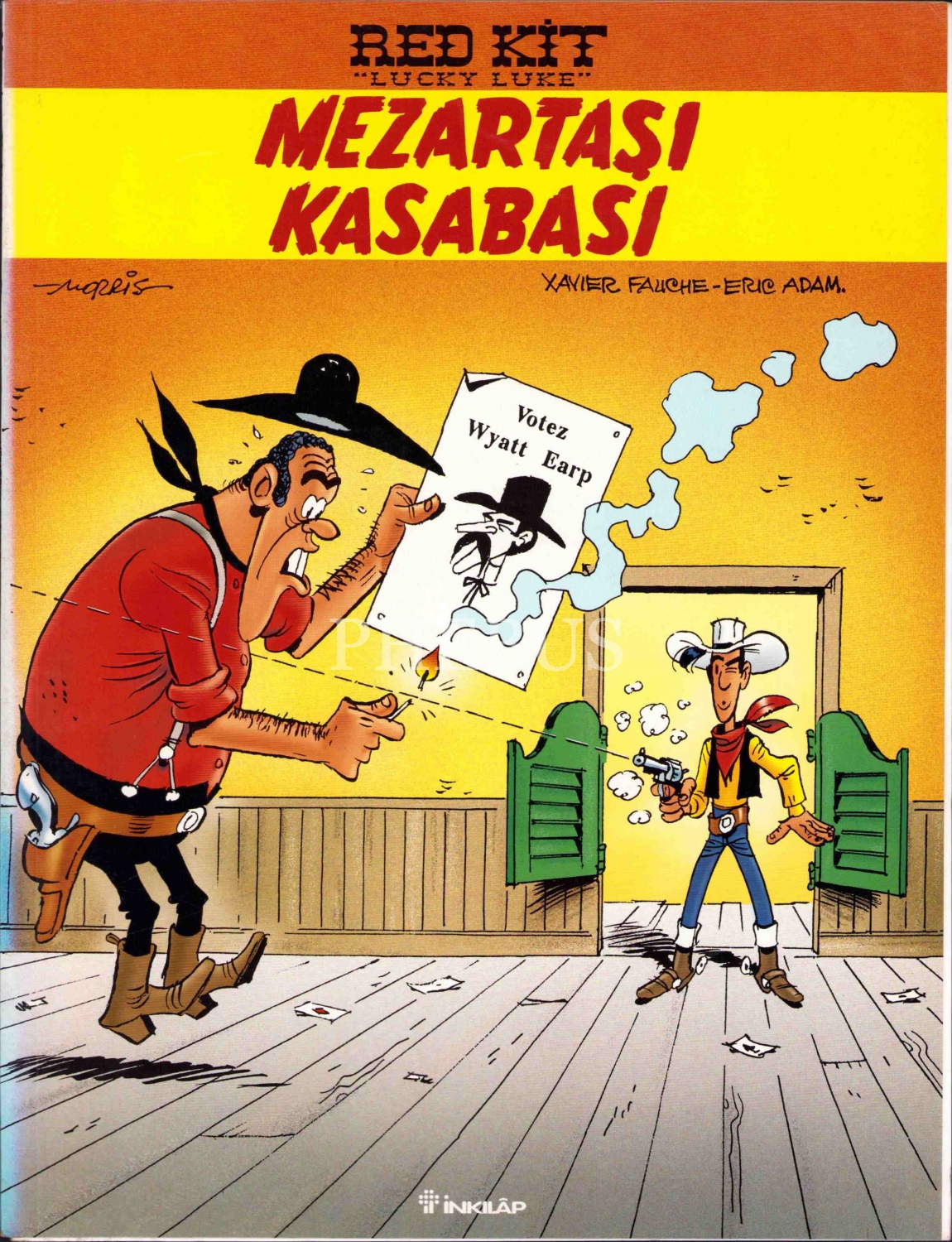Red Kit - Mezartaşı Kasabası, No. 4, Lucky Luke, çev. Eray Canberk, çizim: Morris & Goscinny, İnkılap Yayınları, 2000, 47 sayfa, 22x28 cm