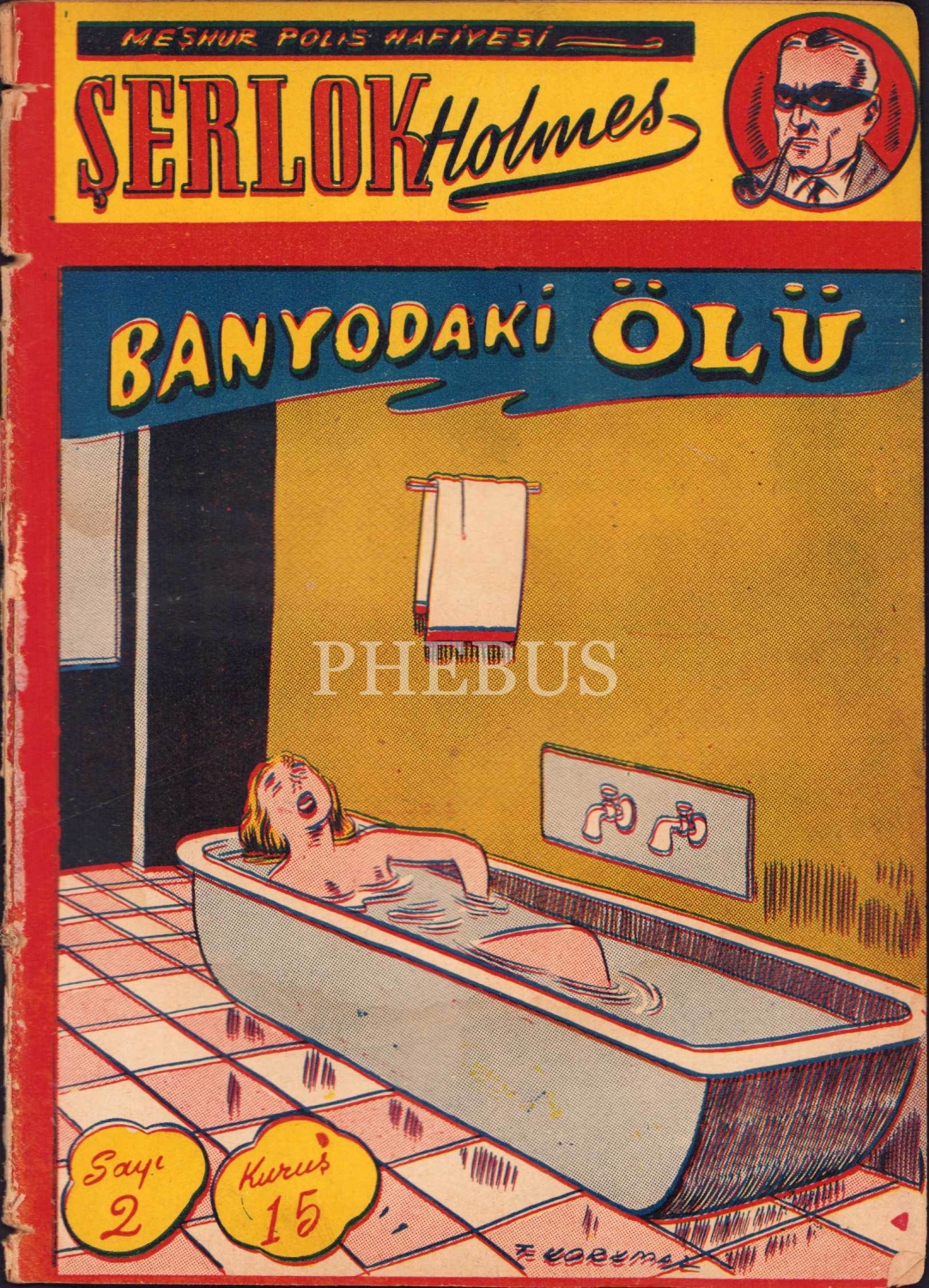 Meşhur Polis Hafiyesi Şerlok Holmes - Görünmeyen Katil Oka-Yama, Sayı 2, kapak çizim T. Korkmaz, Rıza Koşkun Matbaası, 16 sayfa, 13x18 cm