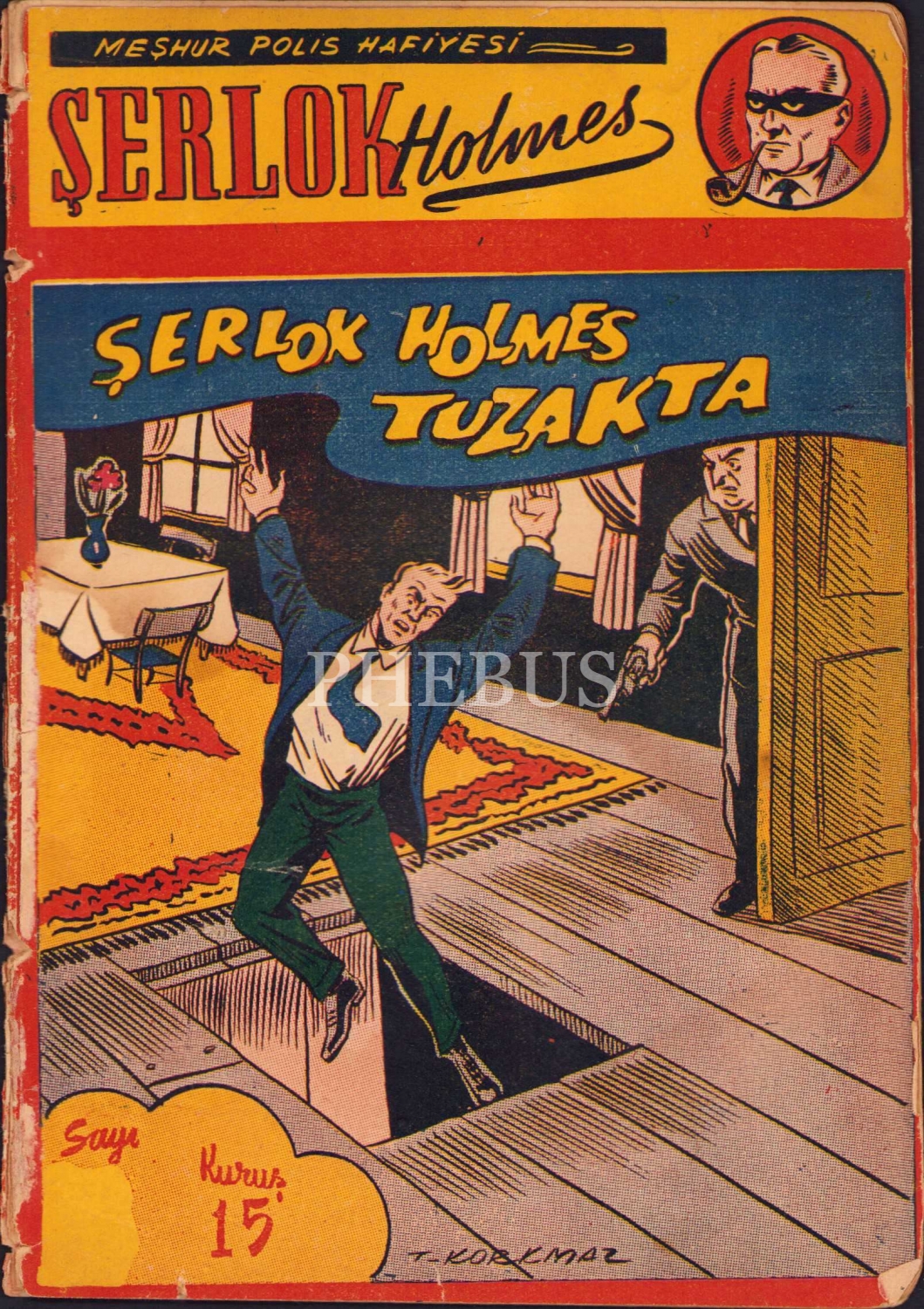 Meşhur Polis Hafiyesi Şerlok Holmes - Sherlock Holmes Tuzakta, kapak çizim T. Korkmaz, Rıza Koşkun Matbaası,sırtı haliyle, 16 sayfa, 13x18 cm