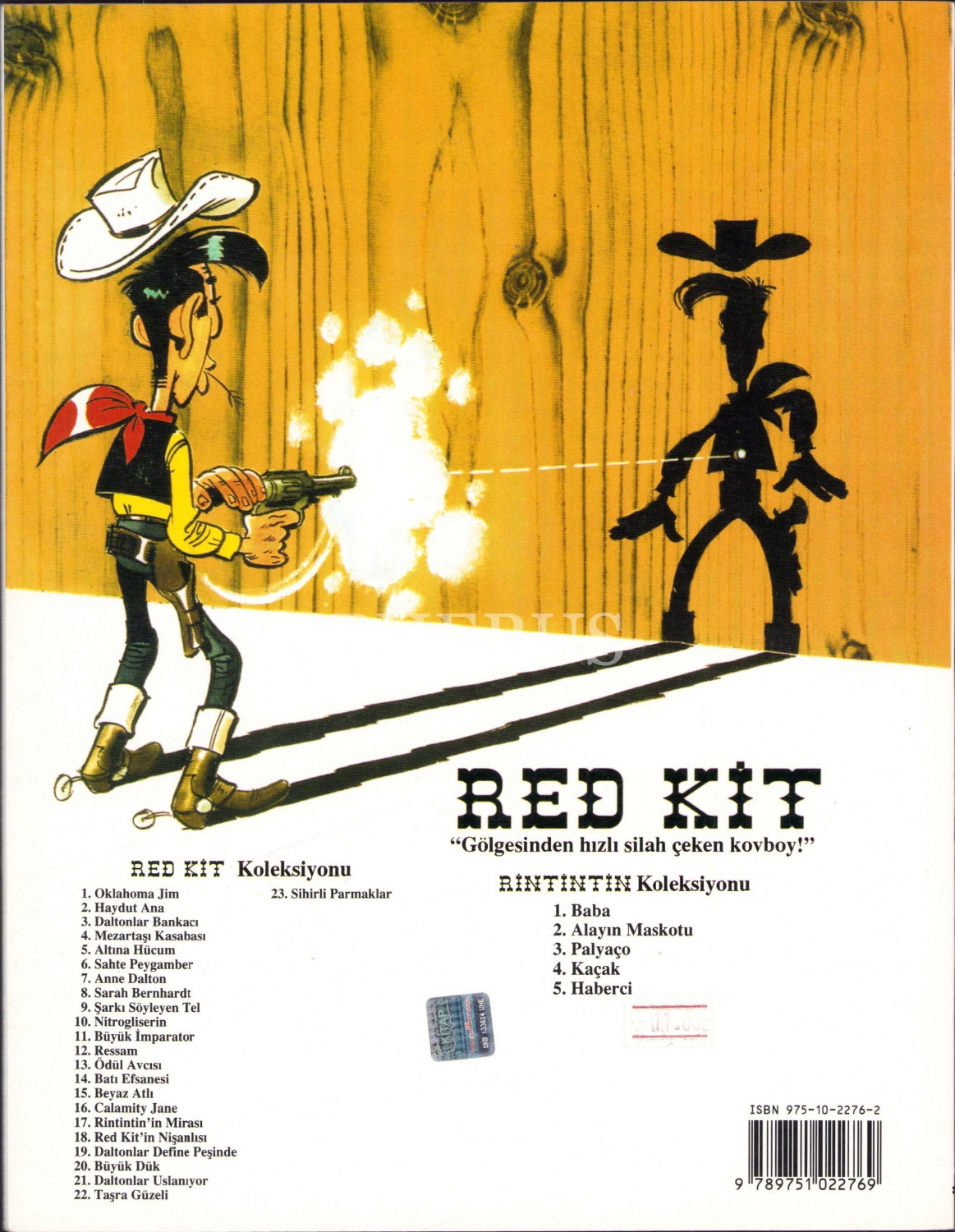 Red Kit - Sihirli Parmaklar, No. 23, Lucky Luke, çev. Eray Canberk, hikaye: La Hartog Van Banda, çizim: Morris, İnkılap Yayınları, 2005, 47 sayfa, 22x28 cm