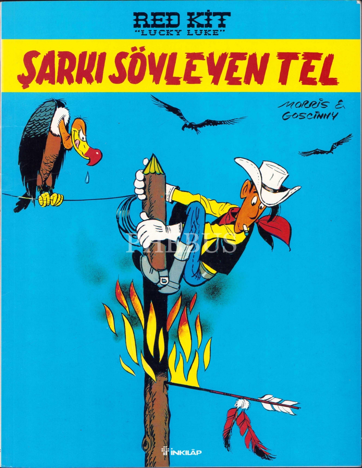 Red Kit - Şarkı Söyleyen Tel, No. 9, Lucky Luke, çev. Eray Canberk, hikaye: Goscinny, çizim: Morris, İnkılap Yayınları, 2002, 47 sayfa, 22x28 cm