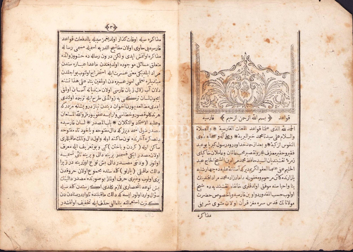 Osmanlıca Kavaid-i Farisi, Şam Vilayet Matbaası 1309, 74 sayfa, 20x14 cm, haliyledir