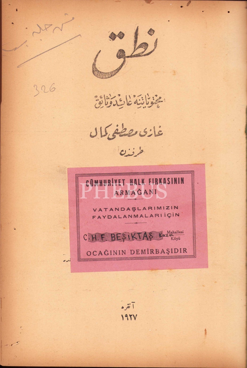 Osmanlıca Nutuk Muhteviyatına Ait Vesaik, Gazi Mustafa Kemal [Atatürk], 1927, 304 sayfa, 27x20