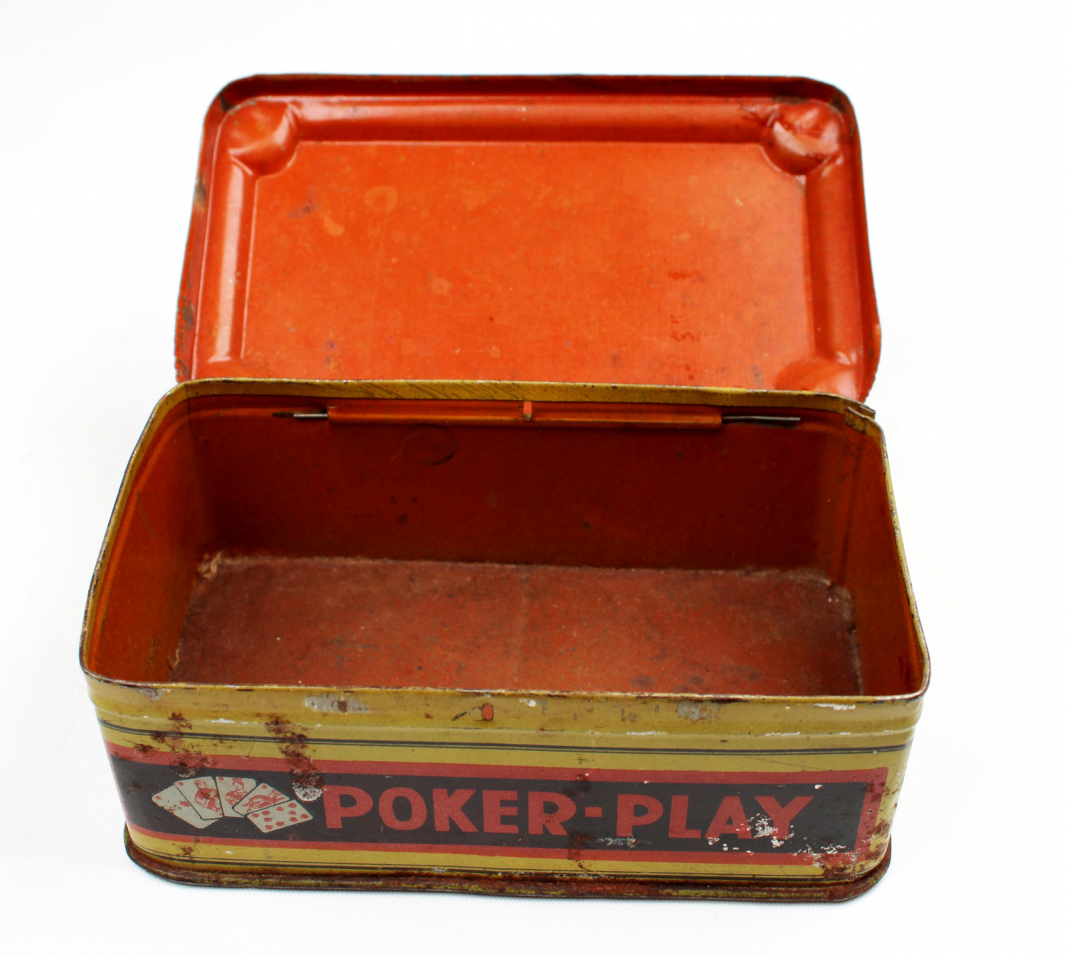 Poker Play jiletleri reklamlı teneke kutu, 14x8cm