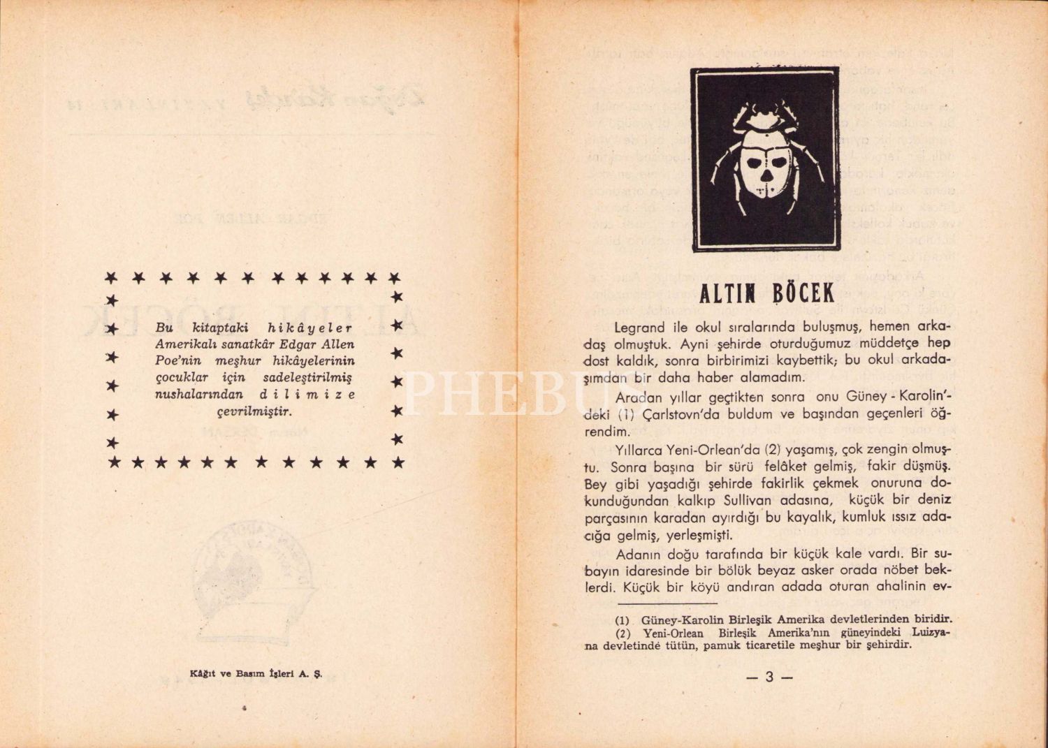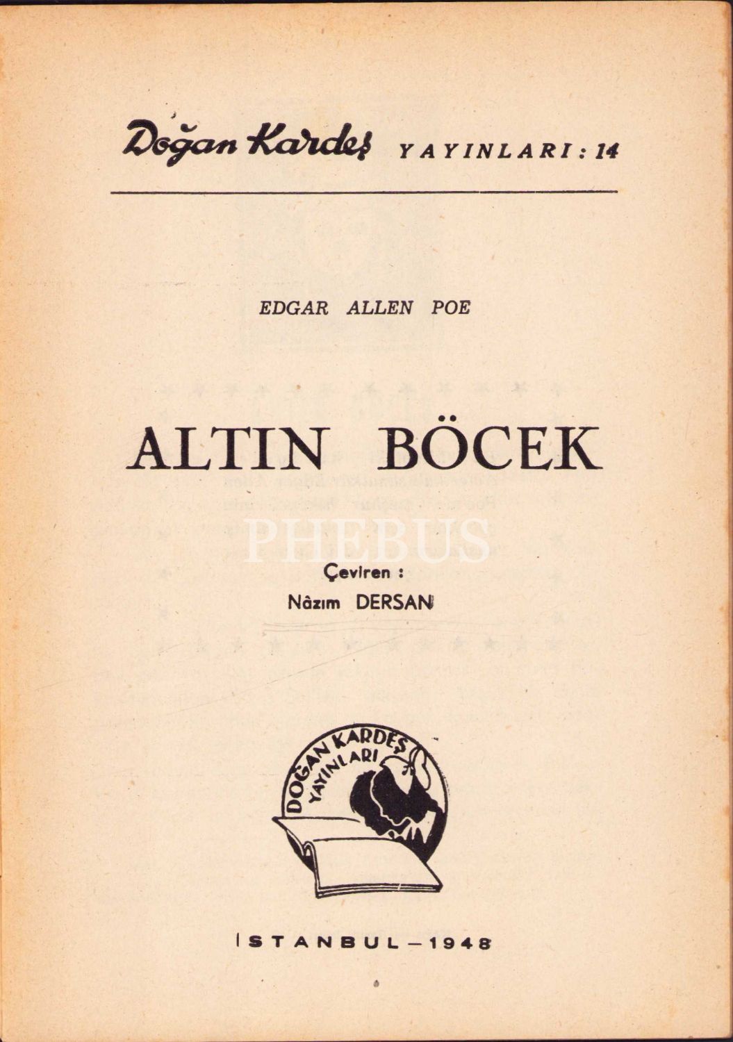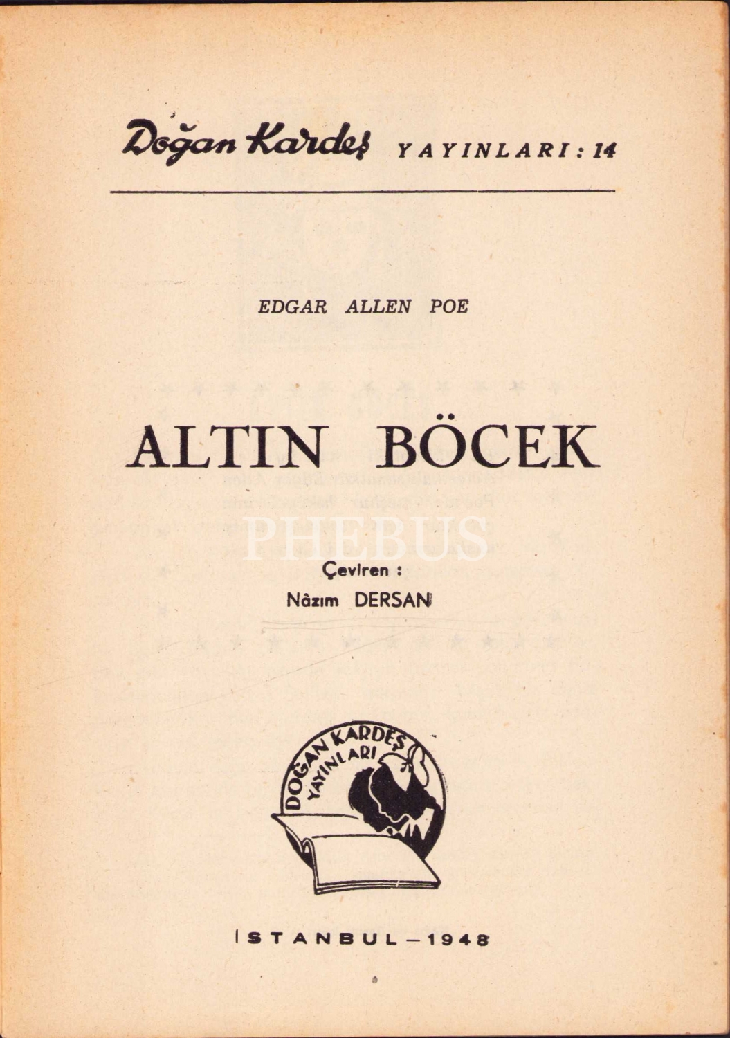 Altın Böcek, Edgar Allen Poe, Çeviren Nâzım Dersan, Çocuk kitabı, 1948, 29 sayfa