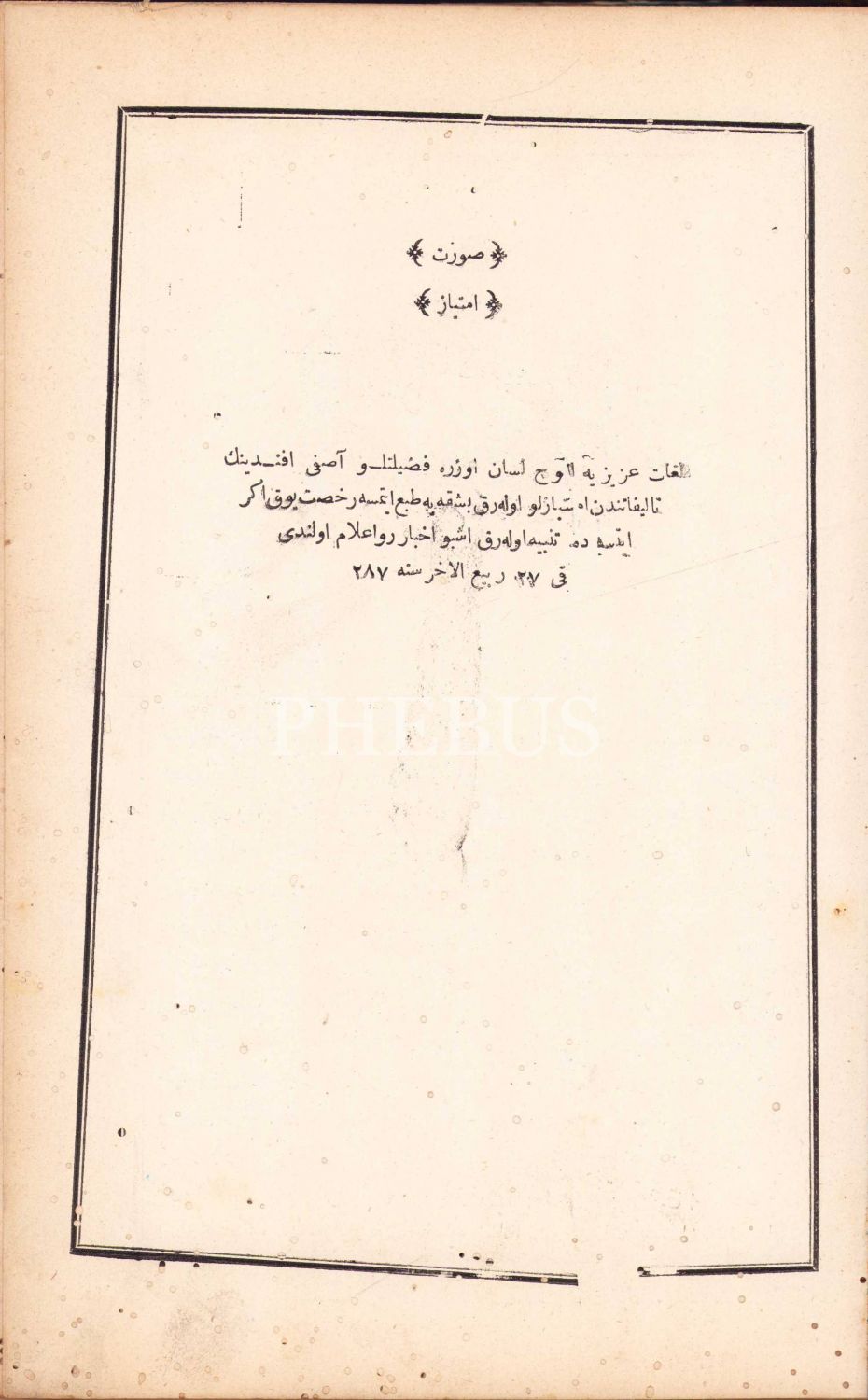Osmanlıca Lûgat-ı Aziziye, Asafî, İstanbul 1287, 70 sayfa, ÖZEGE; 11770, 27x18, haliyledir