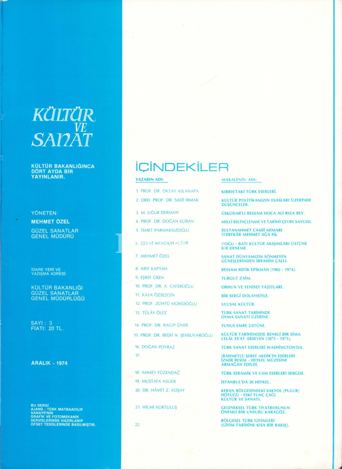 Kültür Bakanlığınca 4 ayda bir yayınlanan derginin 3. sayısıdır. Sayfaları yıpranmıştır
