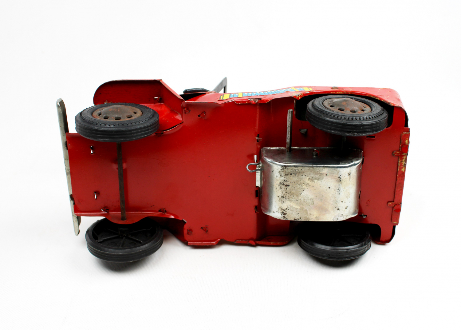 Alasya yerli oyuncak teneke itfaiye jipi, 21x10cm