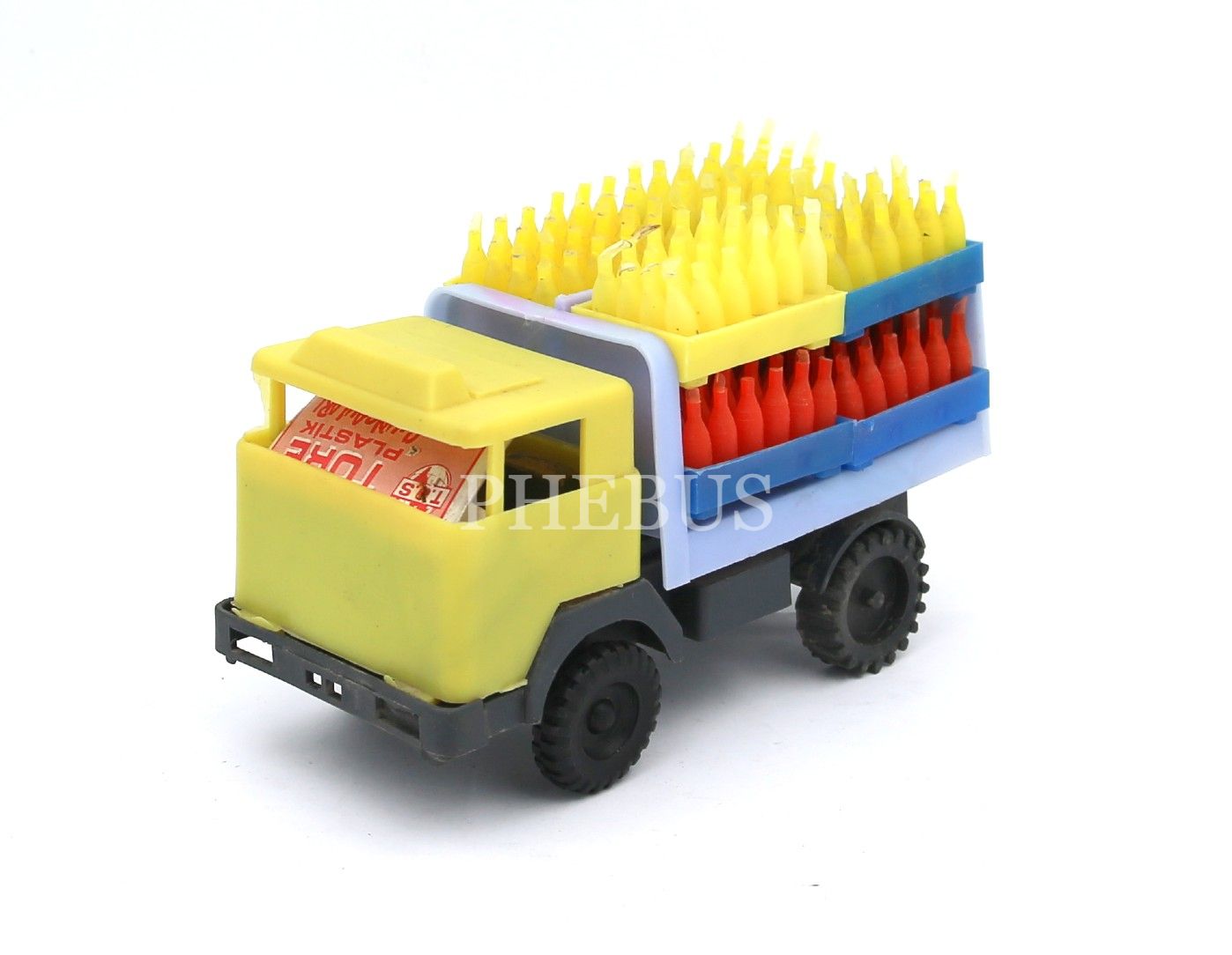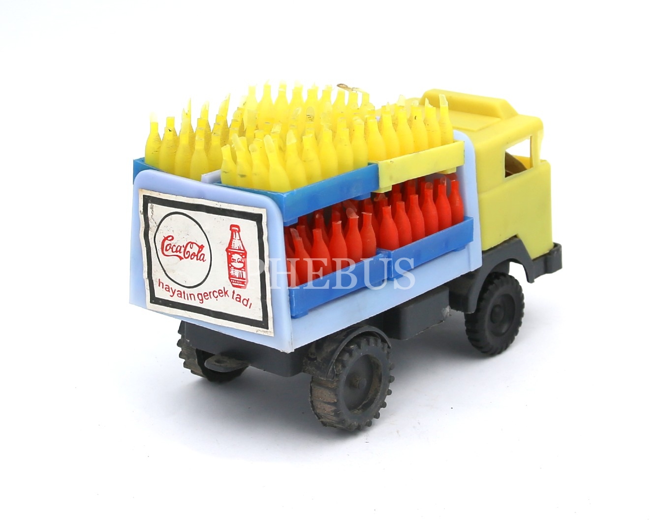 Türk malı, Töre marka, plastik oyuncak, Coca Cola kamyonu, arkası "Coca Cola Hayatın Gerçek Tadı" reklamlı15x9x6 cm