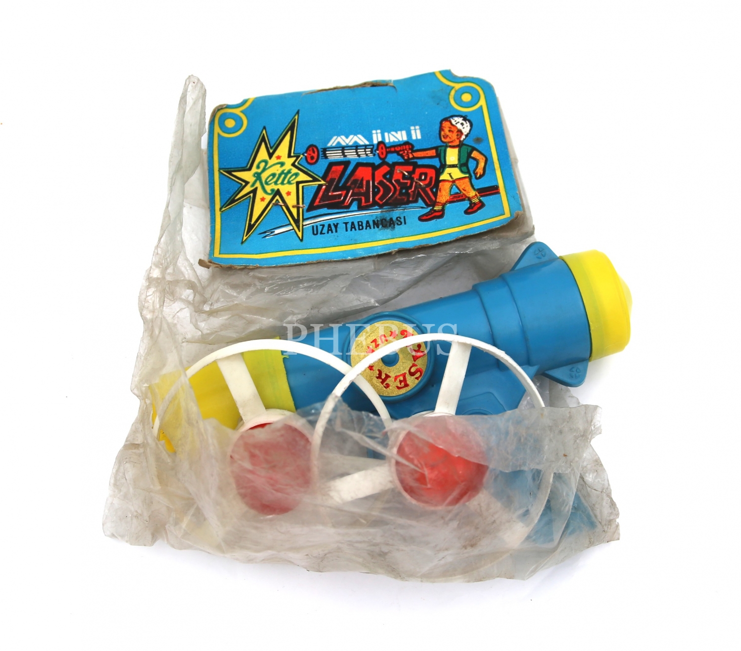 Kette Laser, ambalajında, plastik oyuncak uzay tabancası, 16x9x4 cm