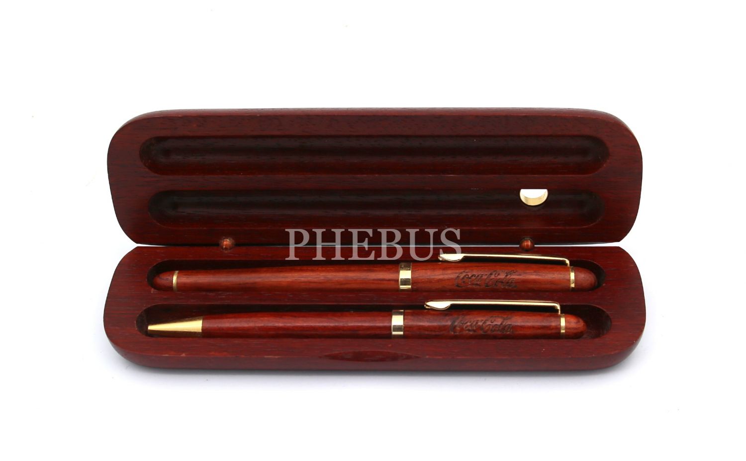 Coca Cola, ahşap kutusunda dolma kalem ve tükenmez kalem, 16x5x2 cm