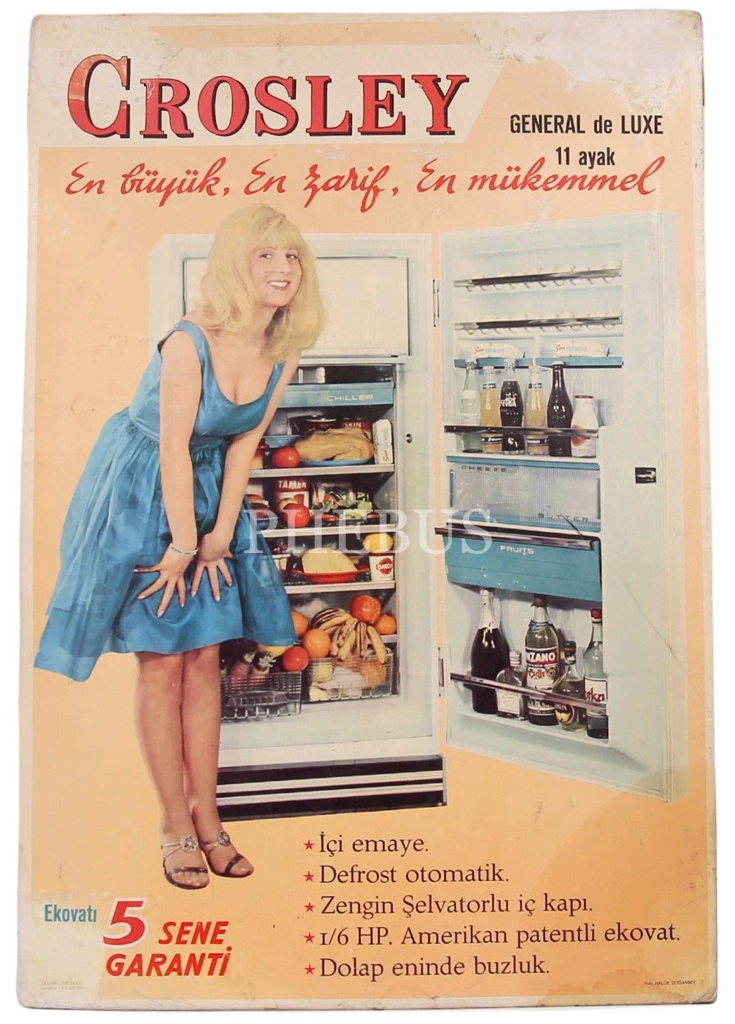 Crosley Buzdolabı reklamlı kartonet, arkası ilan ve damga pullu, 34x49 cm