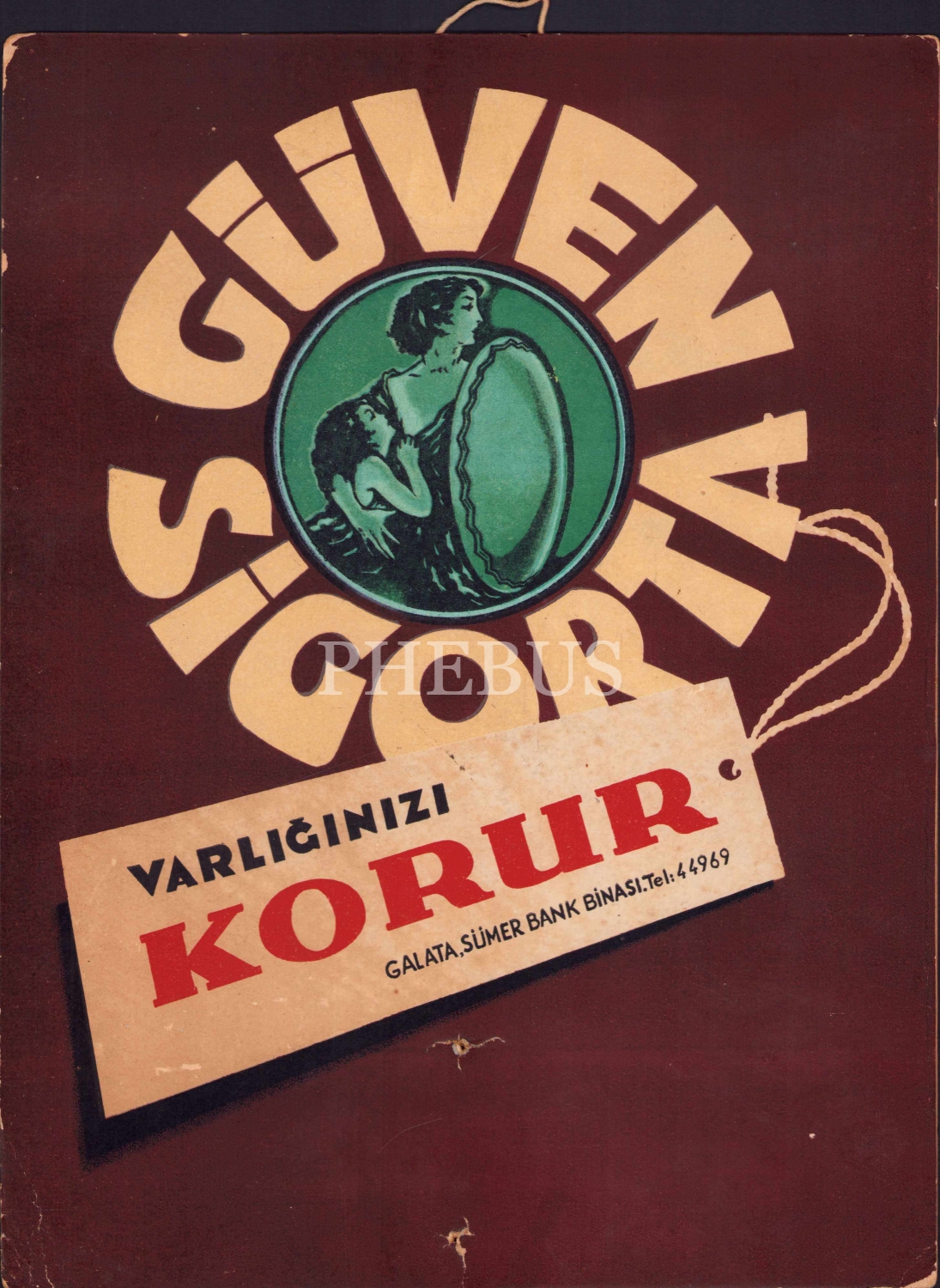 Güven Sigorta, Galata, kartonet, arkası ilan ve damga pullu, 24x32 cm
