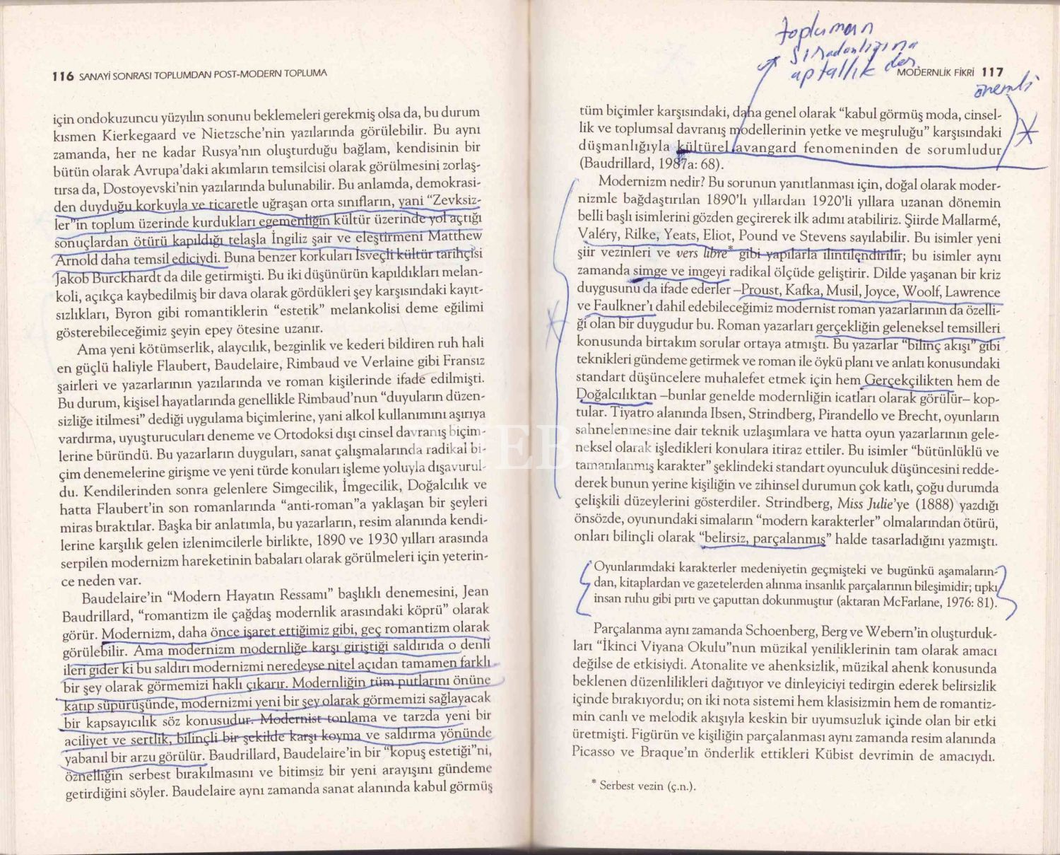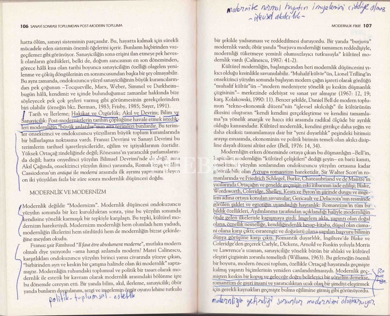 Bazı sayfalarda notlar alınmış, cümlelerin altı çizilmiştir
