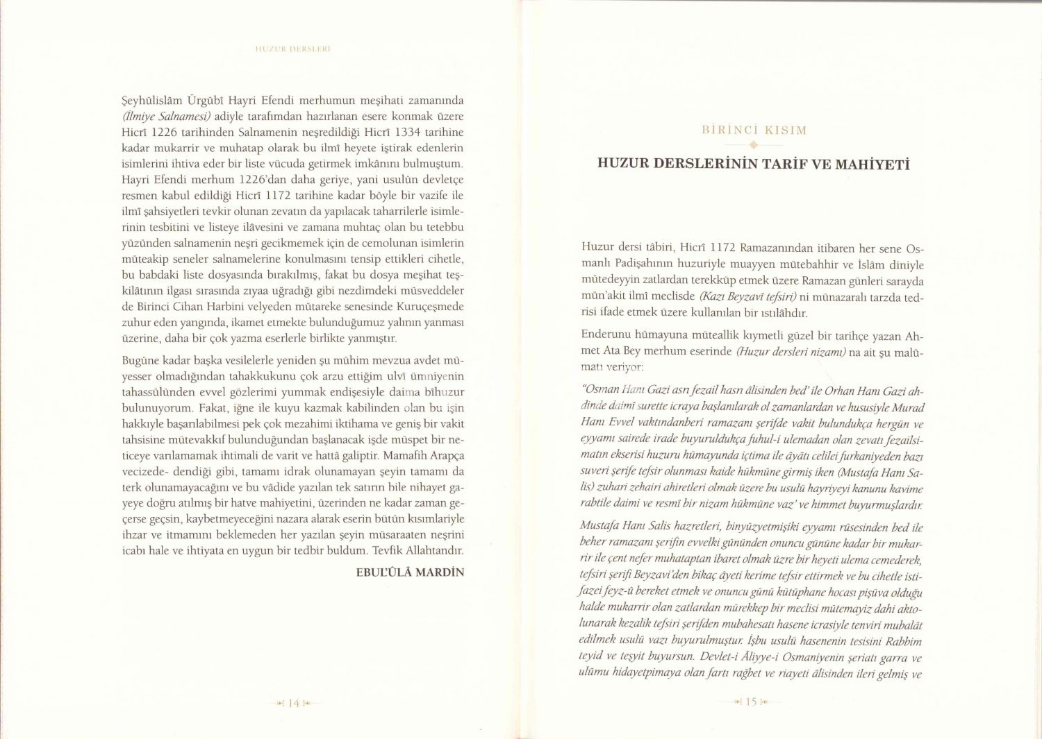 Huzur Dersleri Cilt I, Ebulula Mardin, 2017, 583 sayfa, 25x18 cm
