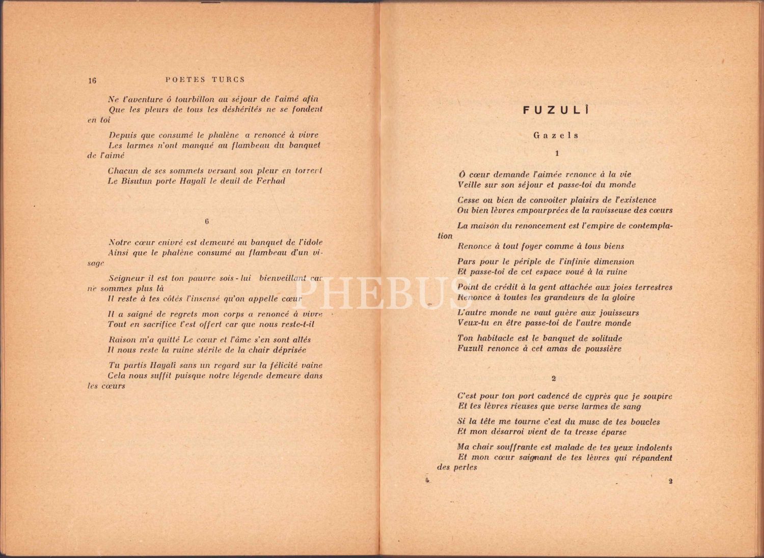 16-18. yüzyıl divan edebiyatı şiirlerinin Fransızcaya tercümelerini ihtiva etmektedir. Bazı sayfaların formaları açılmamıştır