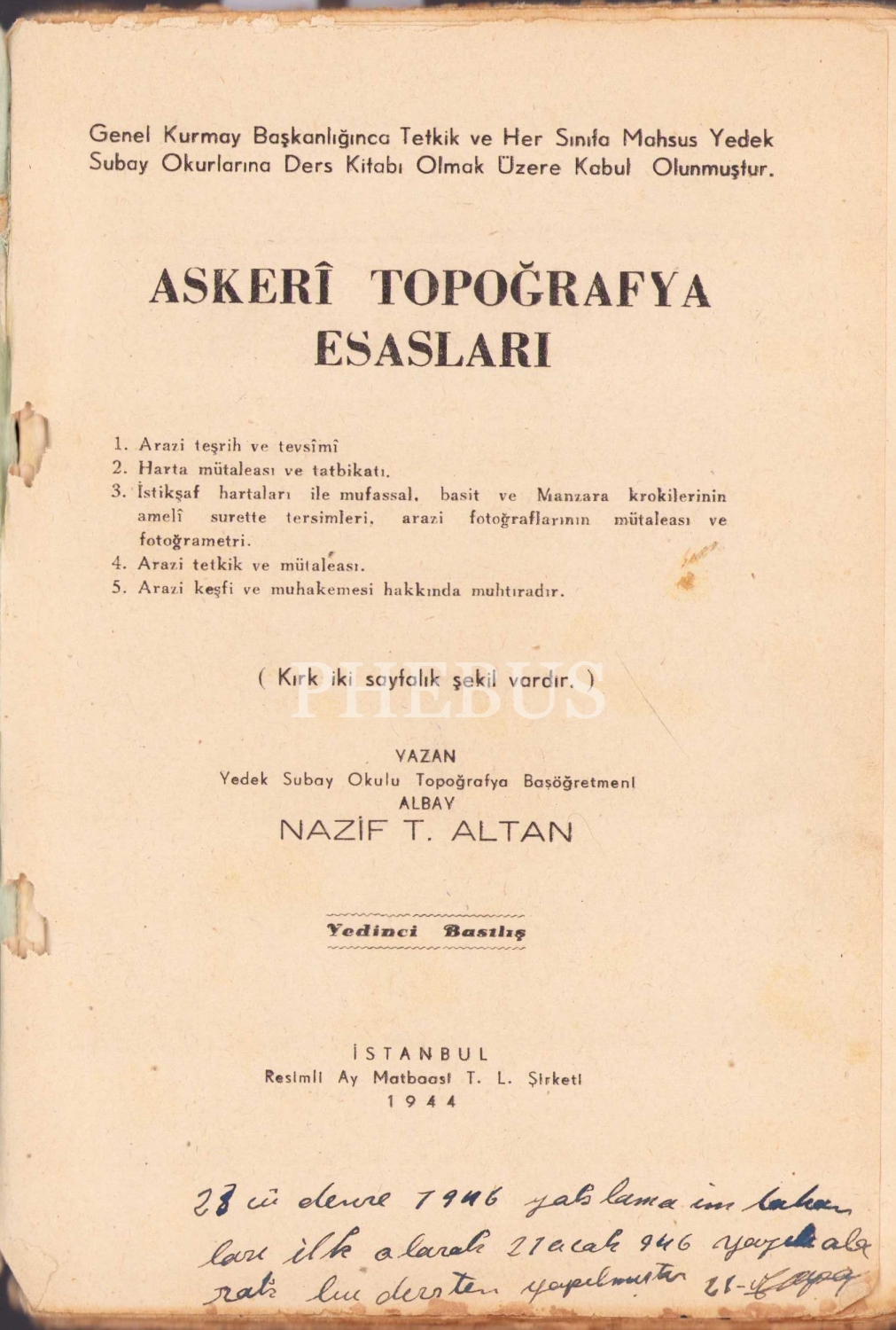 Askeri Topoğrafya Esasları, Nazif T. Altan, 1944, 300 sayfa,