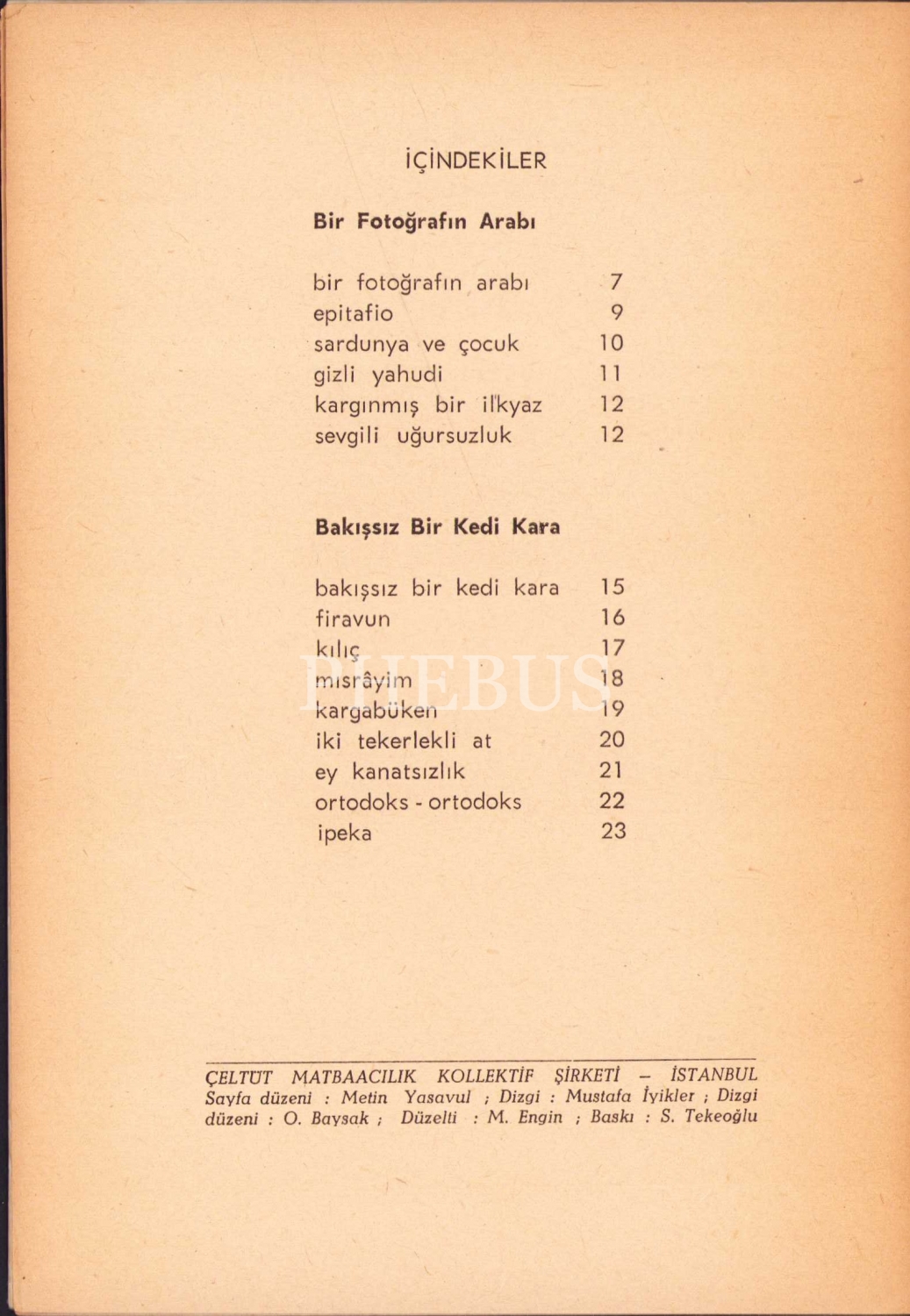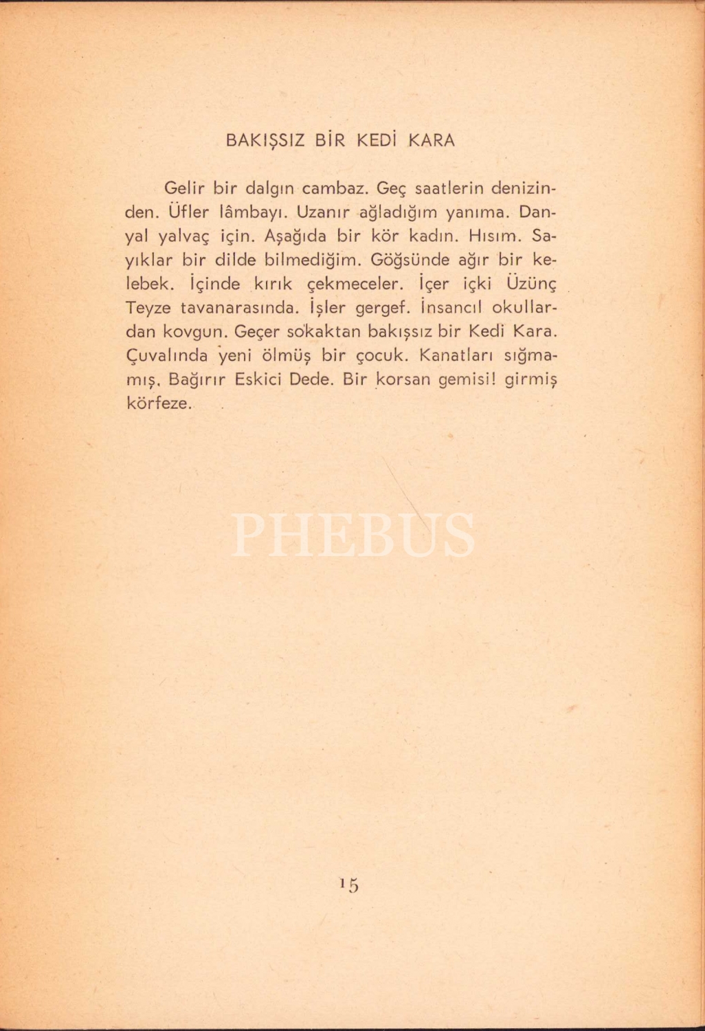 Bakışsız Bir Kedi Kara -Şiir-, Ece Ayhan, ilk baskı 1965, 23 sayfa